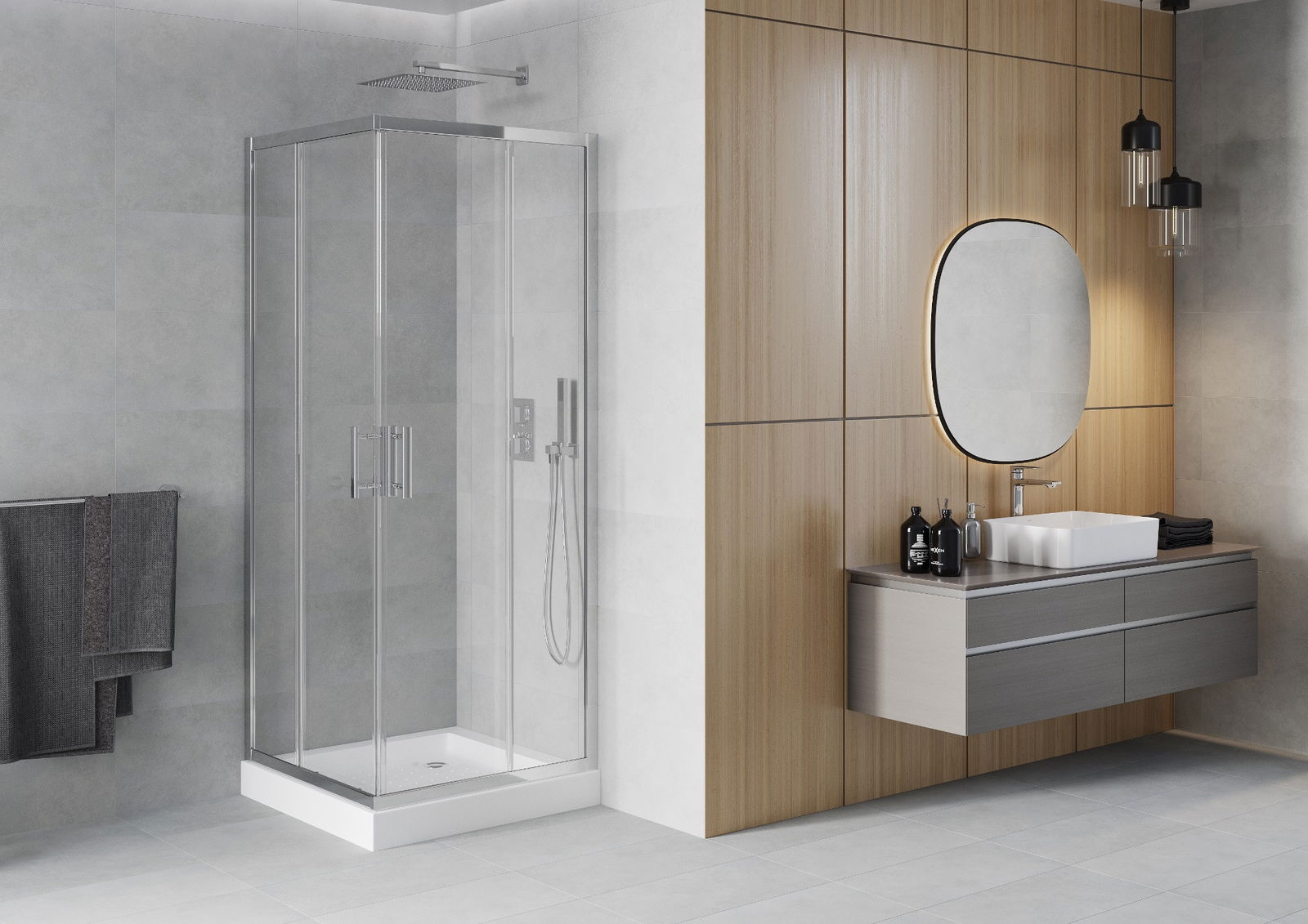 Οι συρόμενες πόρτες κινούνται πάνω σε ειδικούς οδηγούς και δεν απαιτούν επιπλέον χώρο για να ανοίξουν, γι' αυτό είναι κατάλληλες για μικρότερα μπάνια. Χάρη στους διπλούς τροχούς από ανθεκτικό πλαστικό, η κίνησή τους είναι ομαλή.