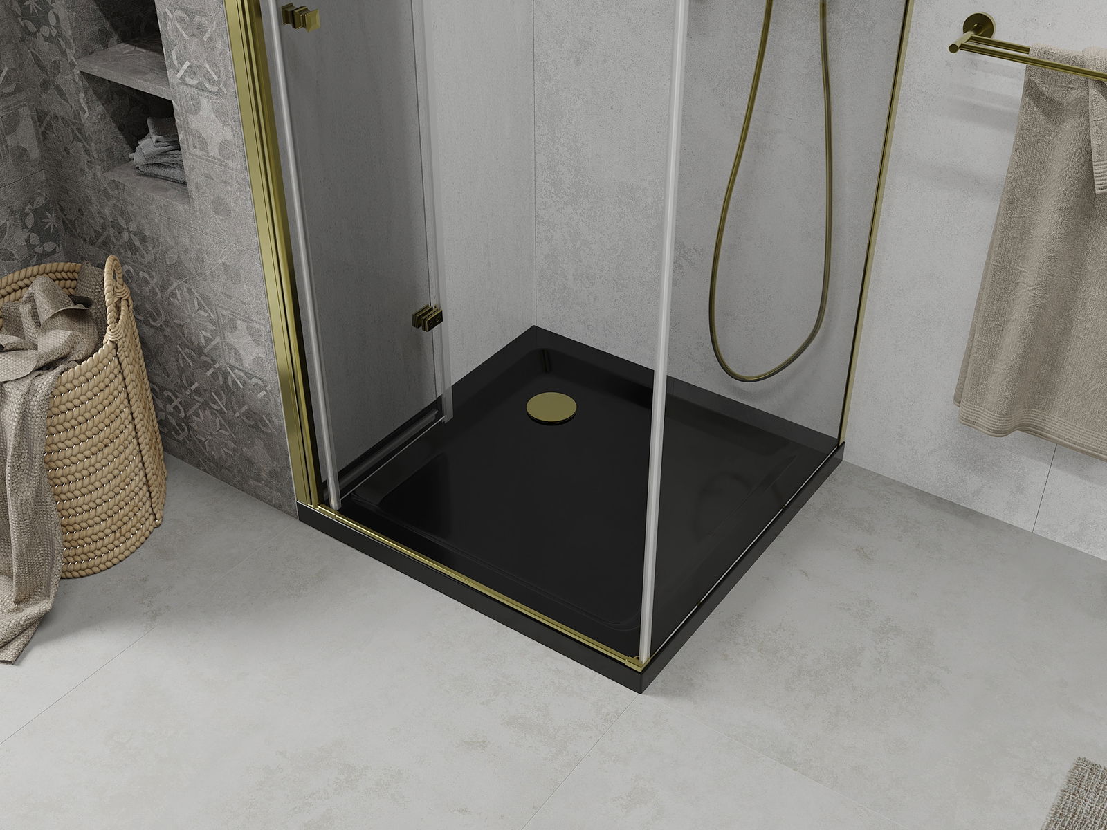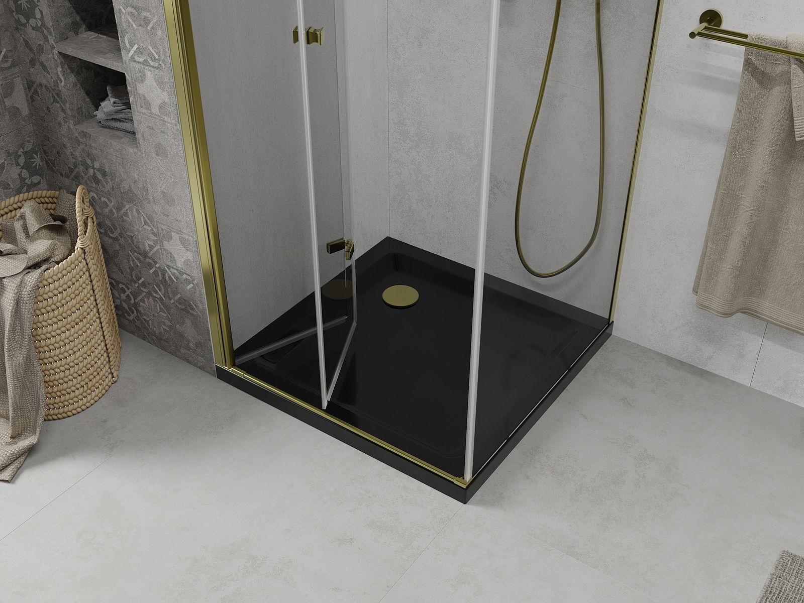 Mexen Lima πτυσσόμενη καμπίνα ντους 80 x 80 cm, διαφανής, χρυσή + σκάφη Flat, μαύρη
