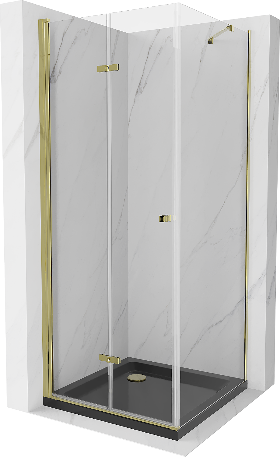 Mexen Lima πτυσσόμενο ντους καμπίνα 90 x 90 εκ, διαφανής, χρυσό + επίπεδη βάση