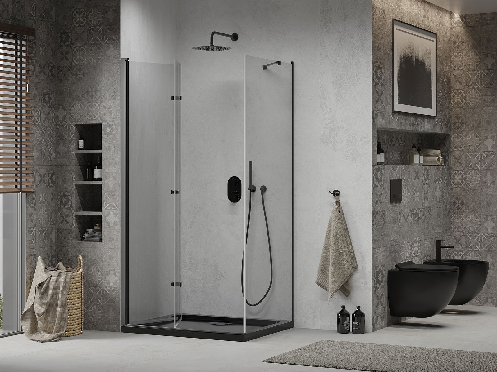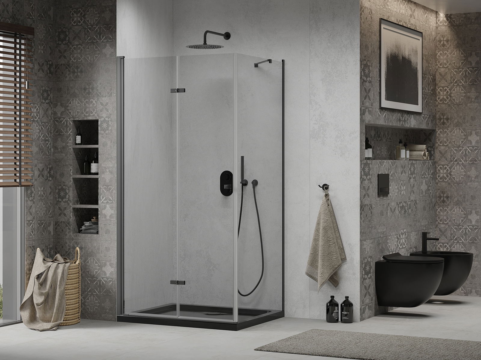Mexen Rio τετράγωνη καμπίνα ντους 90 x 90 εκ., διάφανη, μαύρη - 860-090-090-70-00