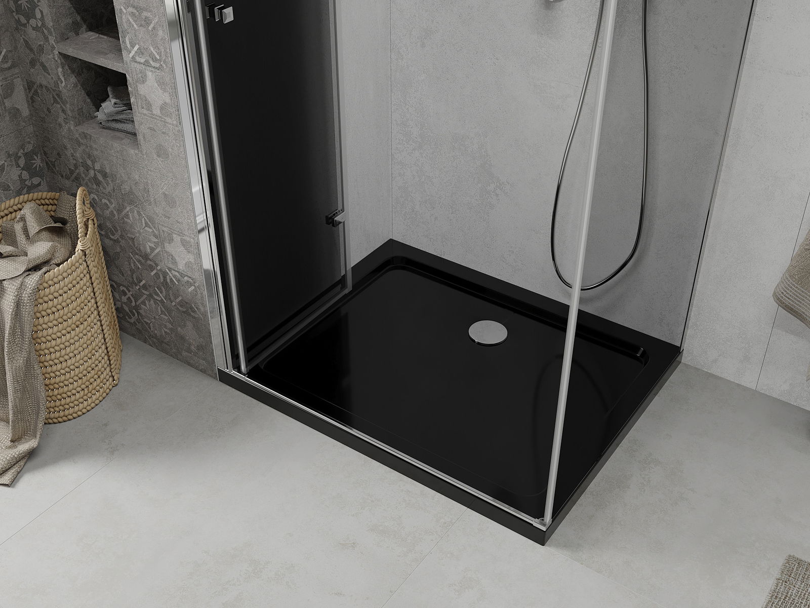 Mexen Lima αναδιπλούμενη καμπίνα ντους 100 x 80 cm, γραφίτης, χρώμιο + ντουζιέρα