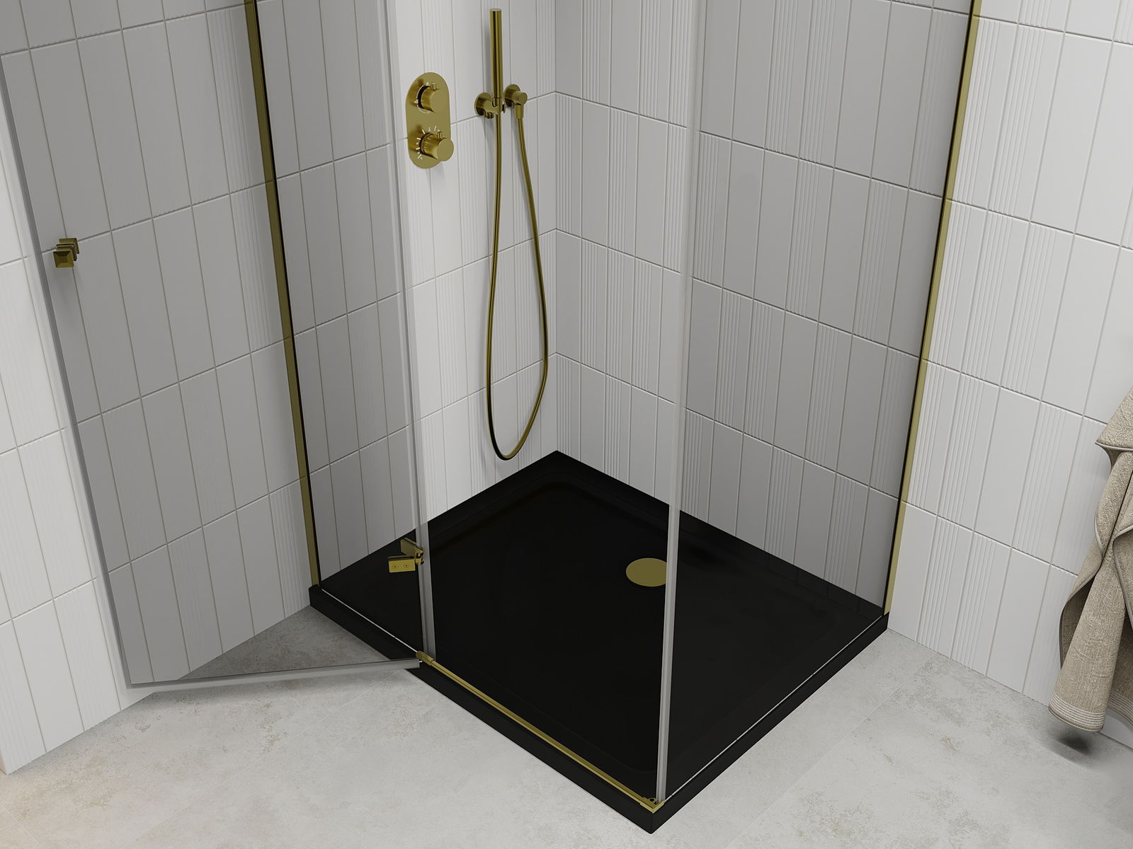 Mexen Roma καμπίνα ντους ανοιγόμενη 90 x 100 cm, διάφανη, χρυσή + δίσκος Flat,