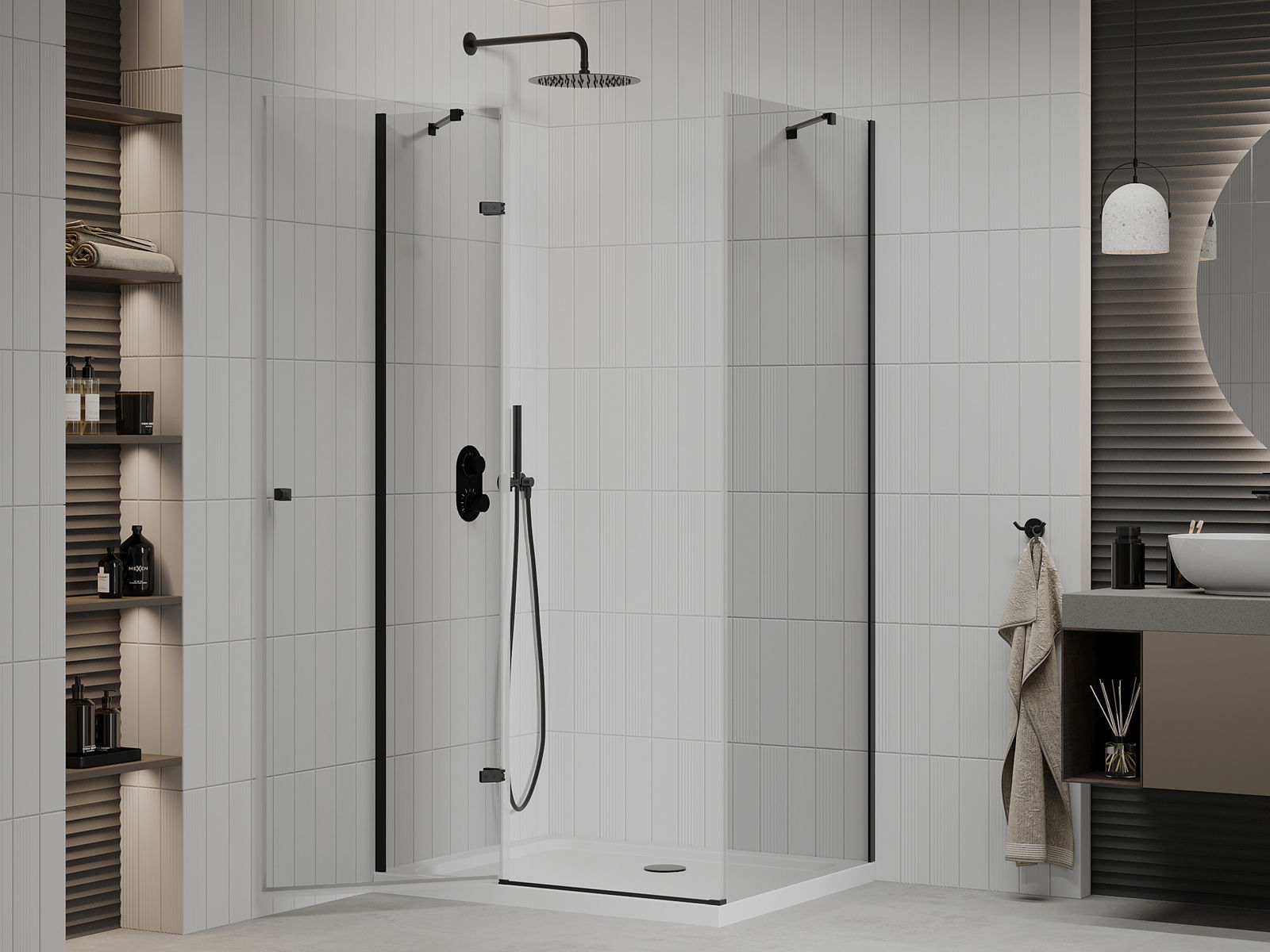 Mexen Rio τετράγωνη καμπίνα ντους 90 x 90 εκ., διάφανη, μαύρη - 860-090-090-70-00