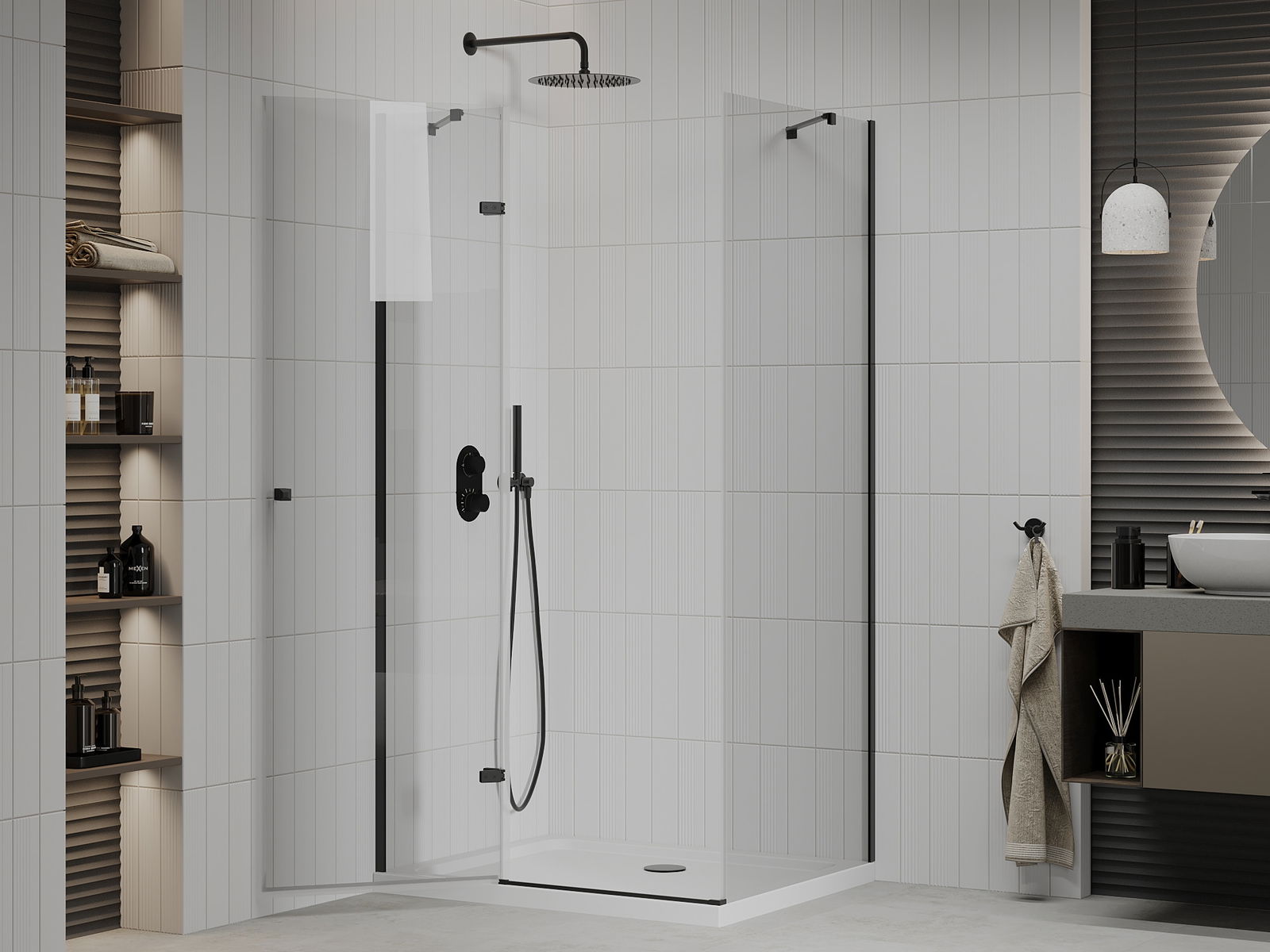 Χάρη στη χρήση ενός καθολικού συστήματος στήριξης, οι πόρτες ντους μπορούν να τοποθετηθούν είτε από τη δεξιά είτε από την αριστερή πλευρά, ανάλογα με τις ανάγκες. Έτσι μπορείτε να σχεδιάσετε με ευκολία ένα ντους προσαρμοσμένο στον χώρο του μπάνιου.
