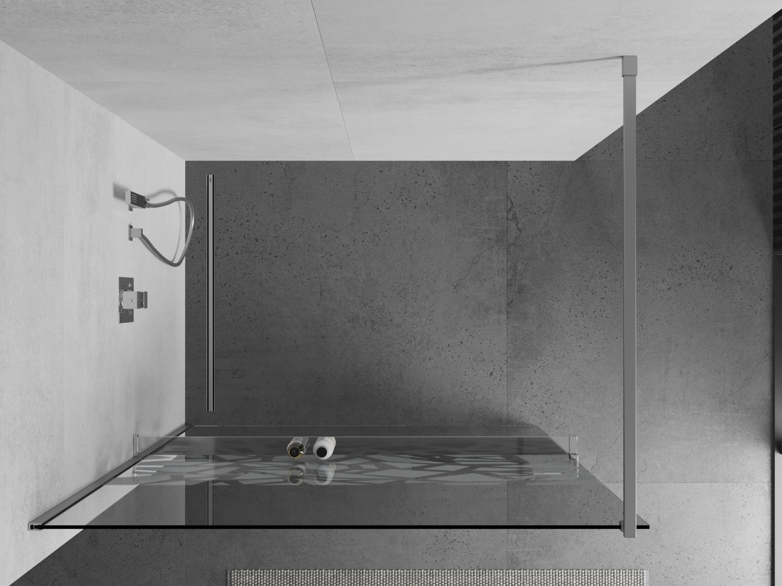 Mexen Kioto+ πίνακας ντους με ράφι Walk-in 90 x 200 cm, λευκό μοτίβο, χρώμιο