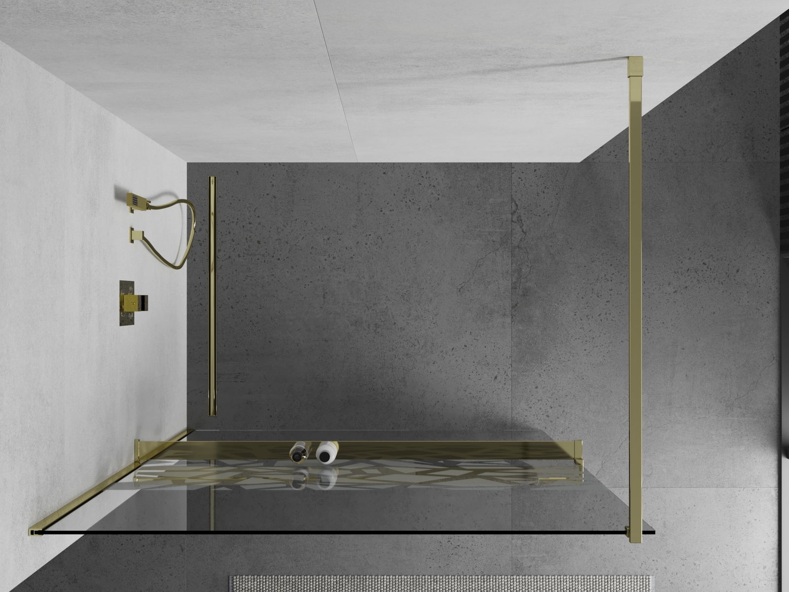 Mexen Kioto+ διαχωριστικό ντους με ράφι Walk-in 100 x 200 cm, λευκό μοτίβο, χρυσό