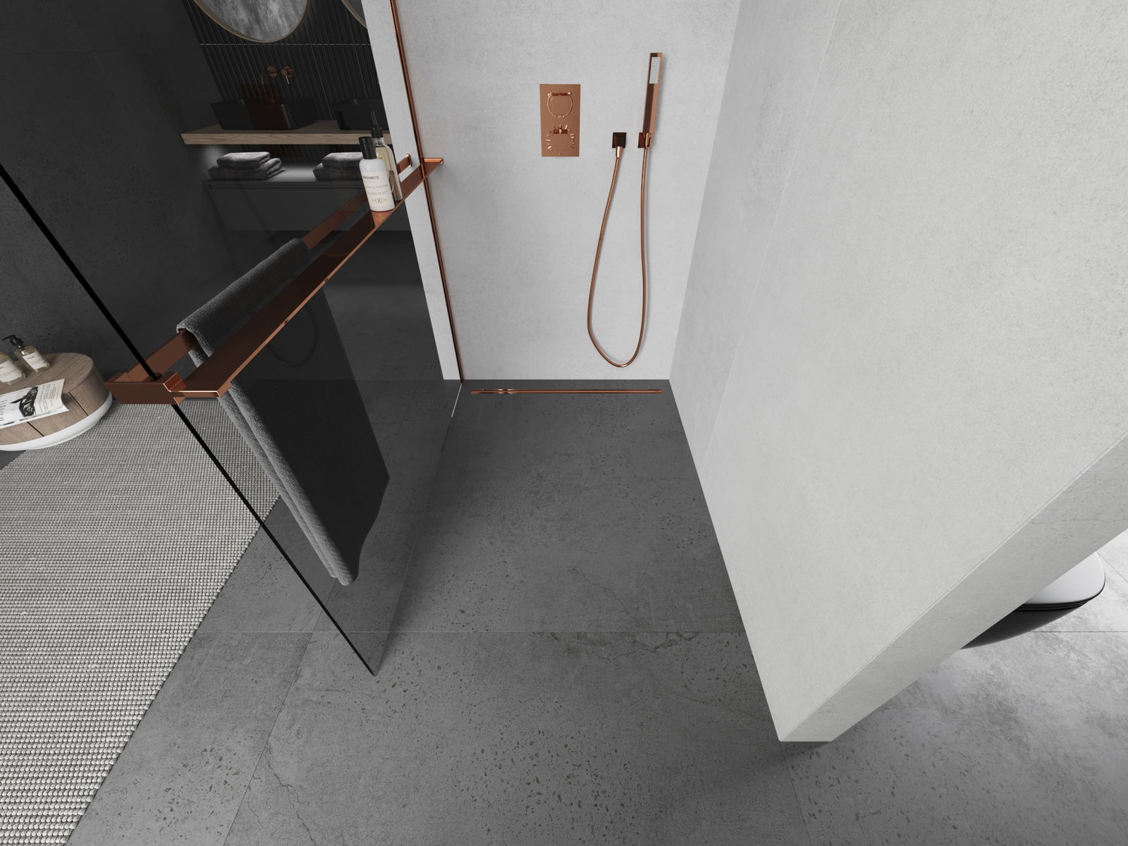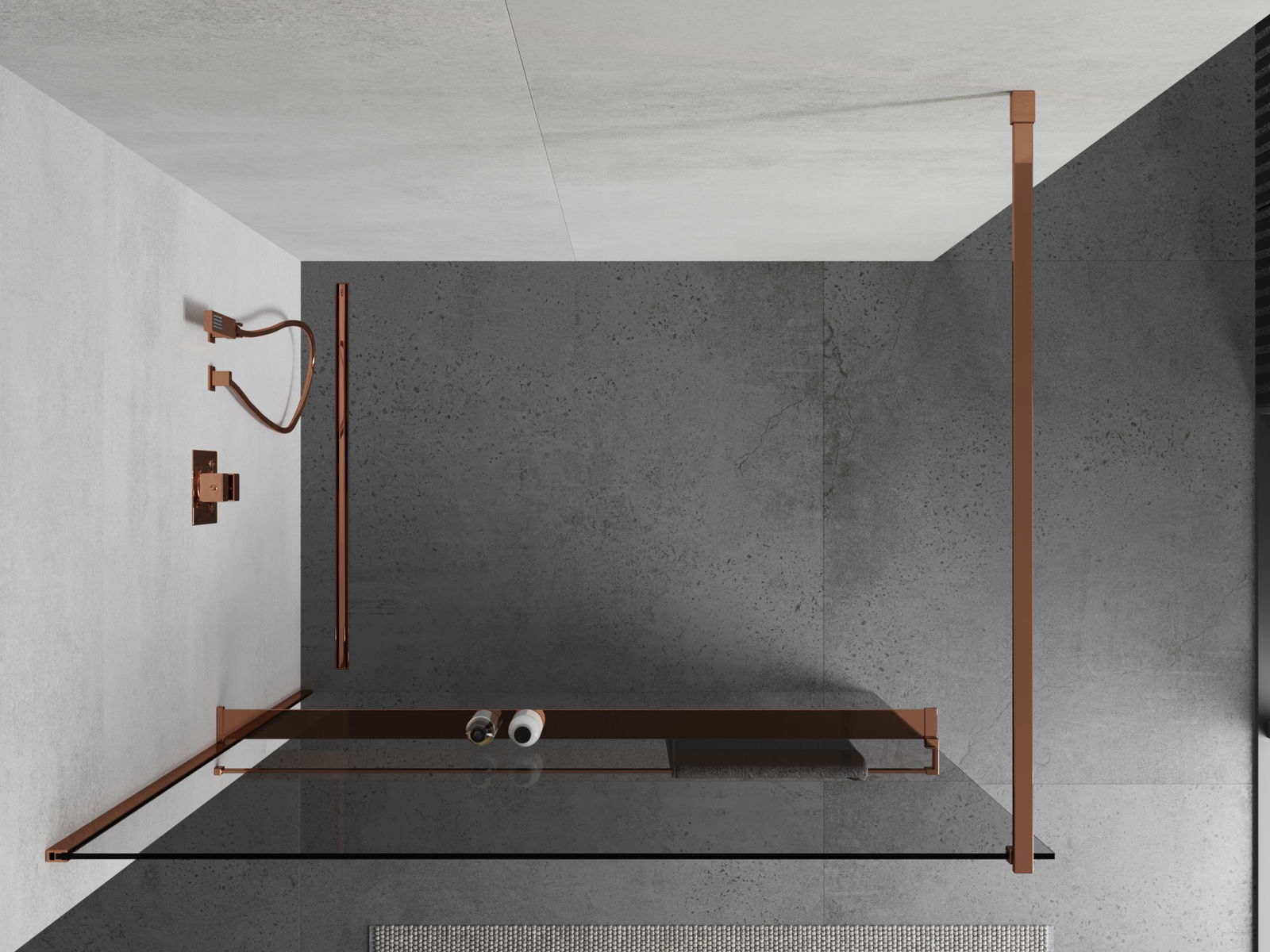 Mexen Kioto+ παραβάν ντους με ράφι Walk-in 70 x 200 cm, διαφανές, ροζ χρυσό