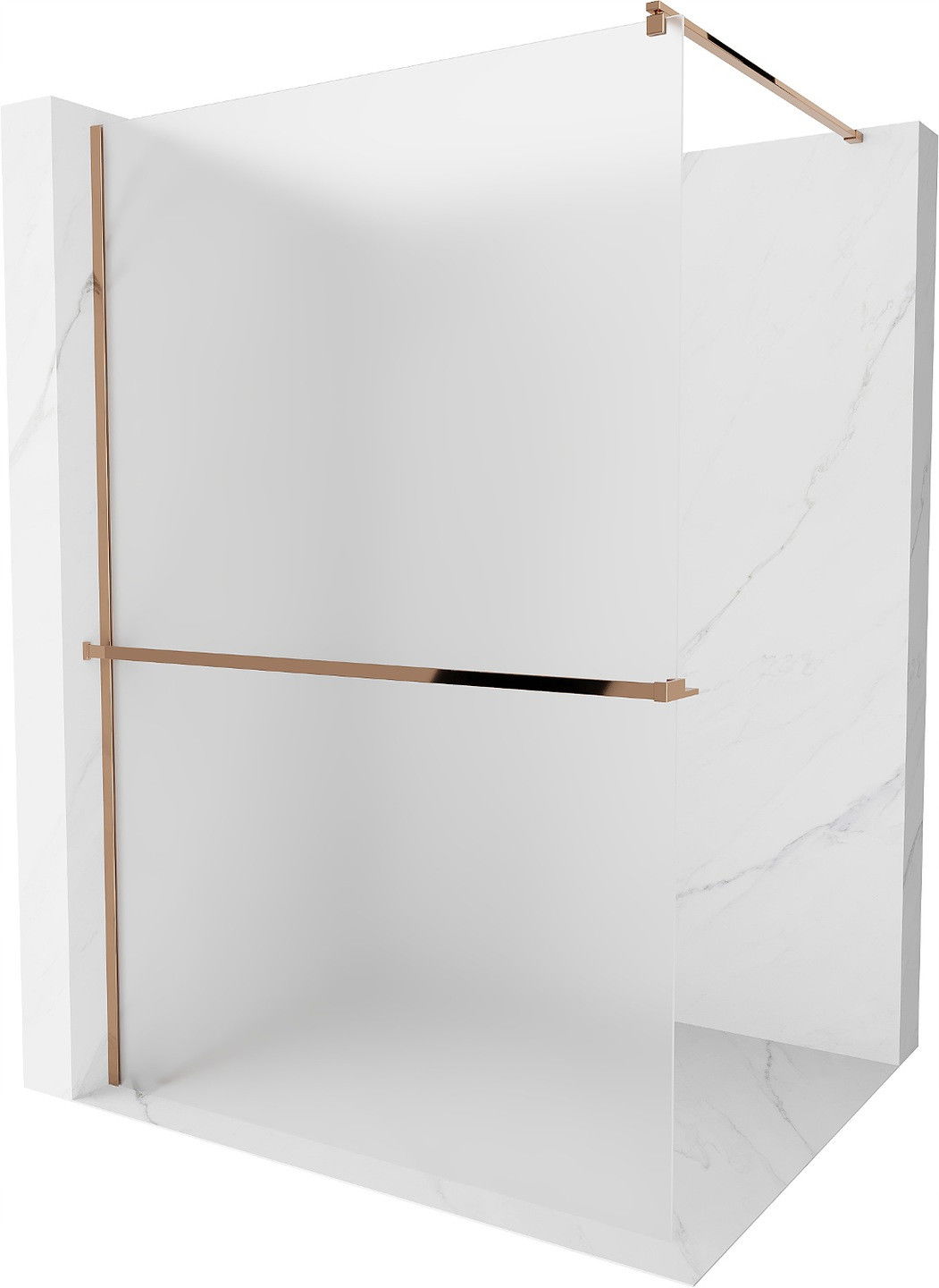 Mexen Kioto+ πάνελ ντουζιέρας με ράφι Walk-in 90 x 200 cm, παγετός, ροζ χρυσό