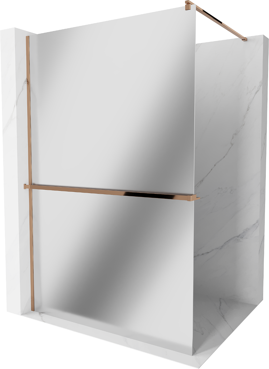 Mexen Kioto+ παραβάν ντους με ράφι Walk-in 120 x 200 cm, καθρέφτης, ροζ χρυσό