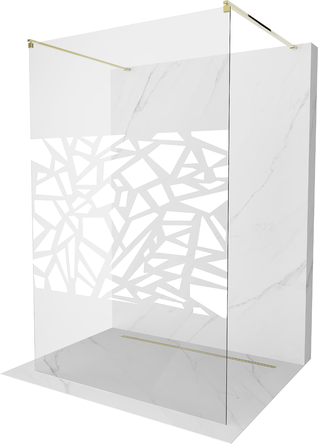 Mexen Kioto ελεύθερη τοποθέτηση τοίχου ντους 100 x 200 cm, λευκό μοτίβο 8 mm, χρυσό