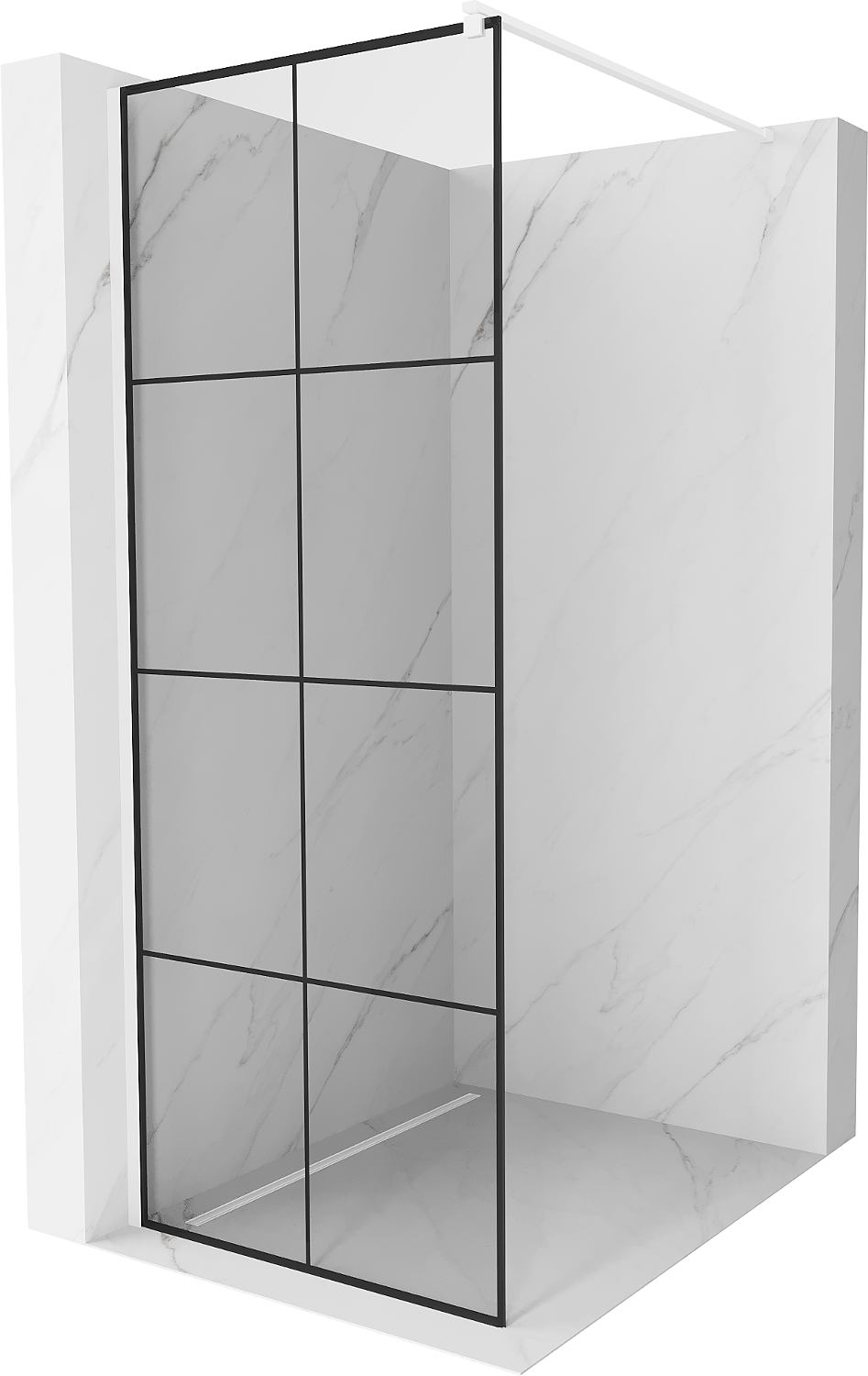 Mexen Kioto Πάνελ ντους Walk-in 80 x 200 cm, μαύρο καρό 8 mm, λευκό - 800-080-101-20-77