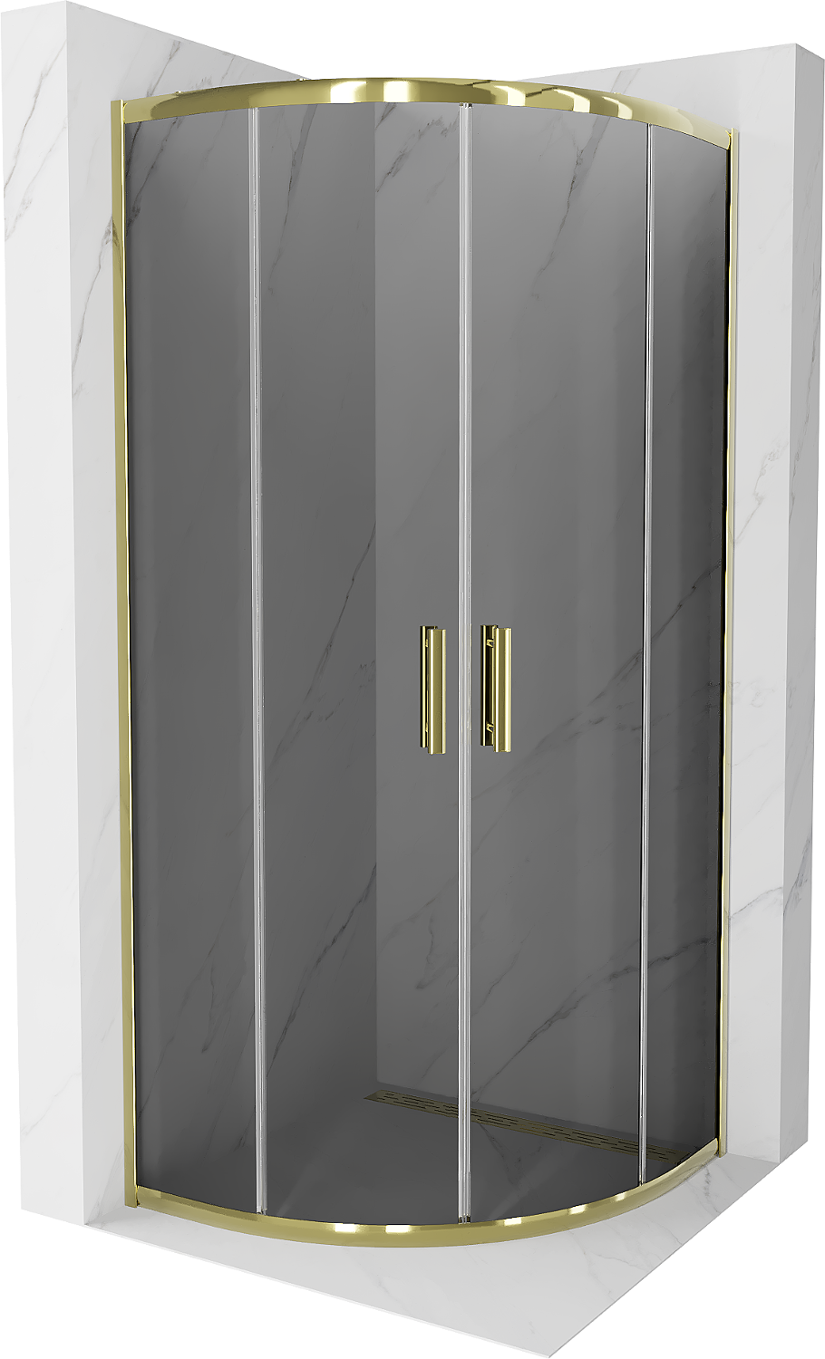 Mexen Rio Ημικυκλική καμπίνα ντους 90 x 90 cm, γραφίτης, χρυσό - 863-090-090-50-40