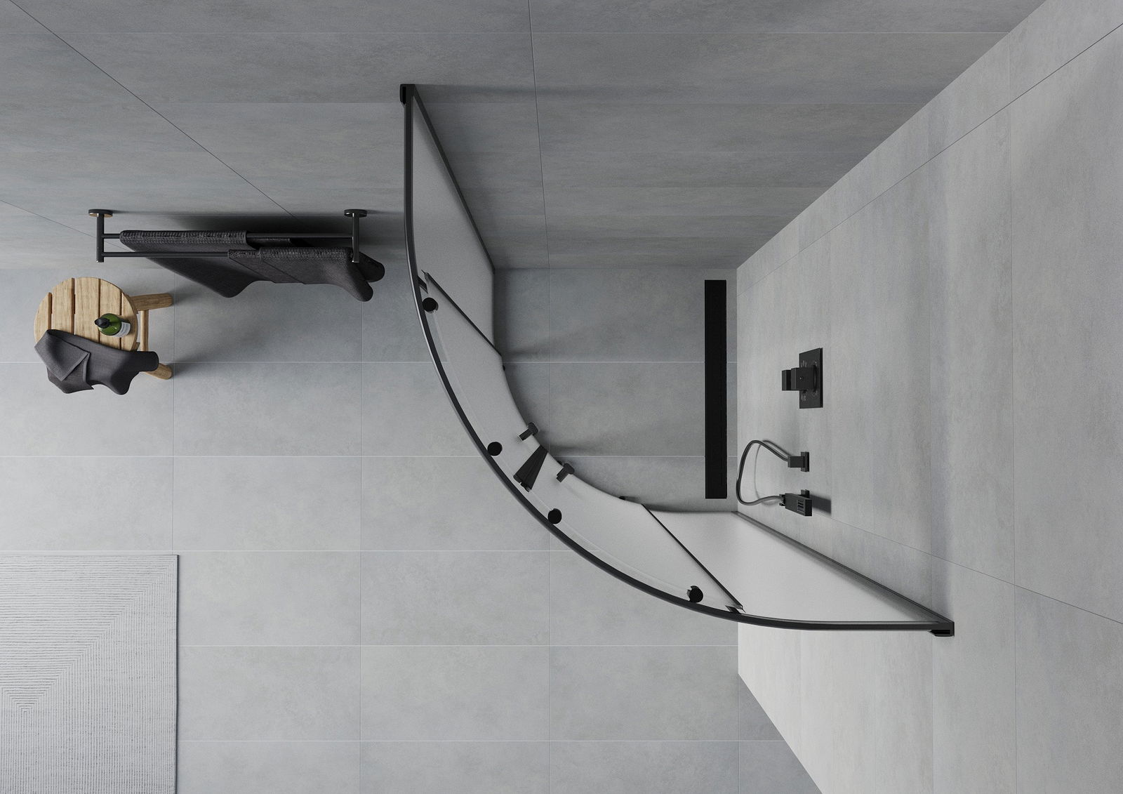 Mexen Rio ημικυκλική καμπίνα ντους 80 x 80 cm, ματ, μαύρη - 863-080-080-70-30