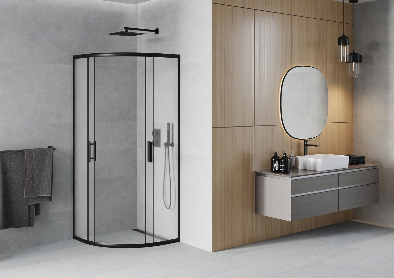 Η πρακτική και άνετη λαβή κατασκευάζεται από ανθεκτικό και αντοχής μέταλλο. Ο μοντέρνος σχεδιασμός σε συνδυασμό με το φινίρισμα που ταιριάζει με το χρώμα των προφίλ προσδίδει στο σύνολο μια σύγχρονη και κομψή εμφάνιση, τονίζοντας την αισθητική κάθε μπάνιου.