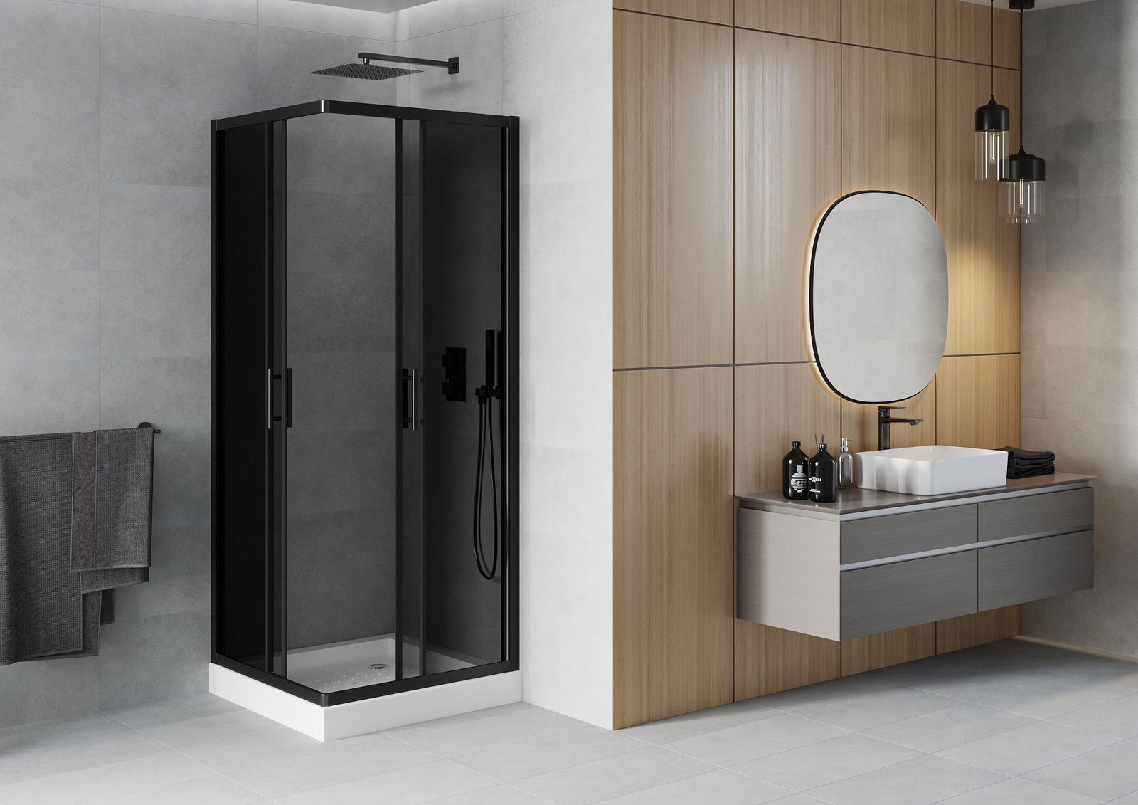 Η πρακτική και άνετη λαβή κατασκευάζεται από ανθεκτικό και αντοχής μέταλλο. Ο μοντέρνος σχεδιασμός σε συνδυασμό με το φινίρισμα που ταιριάζει με το χρώμα των προφίλ προσδίδει στο σύνολο μια σύγχρονη και κομψή εμφάνιση, τονίζοντας την αισθητική κάθε μπάνιου.