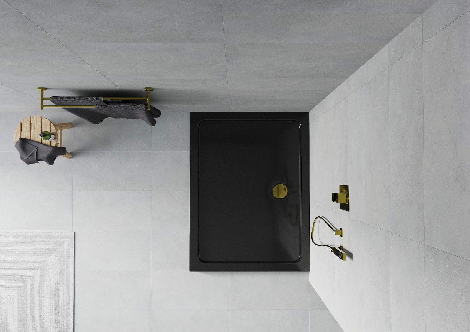 Mexen Flat ορθογώνιος ντουζιέρα slim 100 x 70 cm, μαύρη, σιφώνι χρυσό - 40707010G