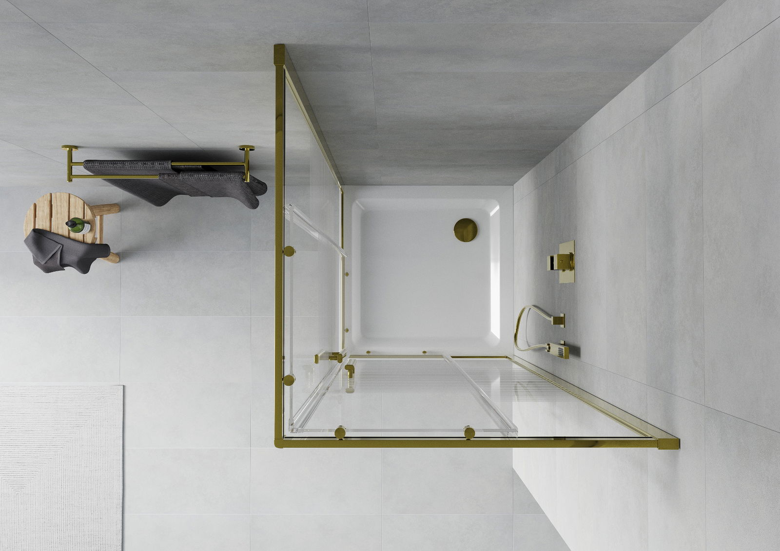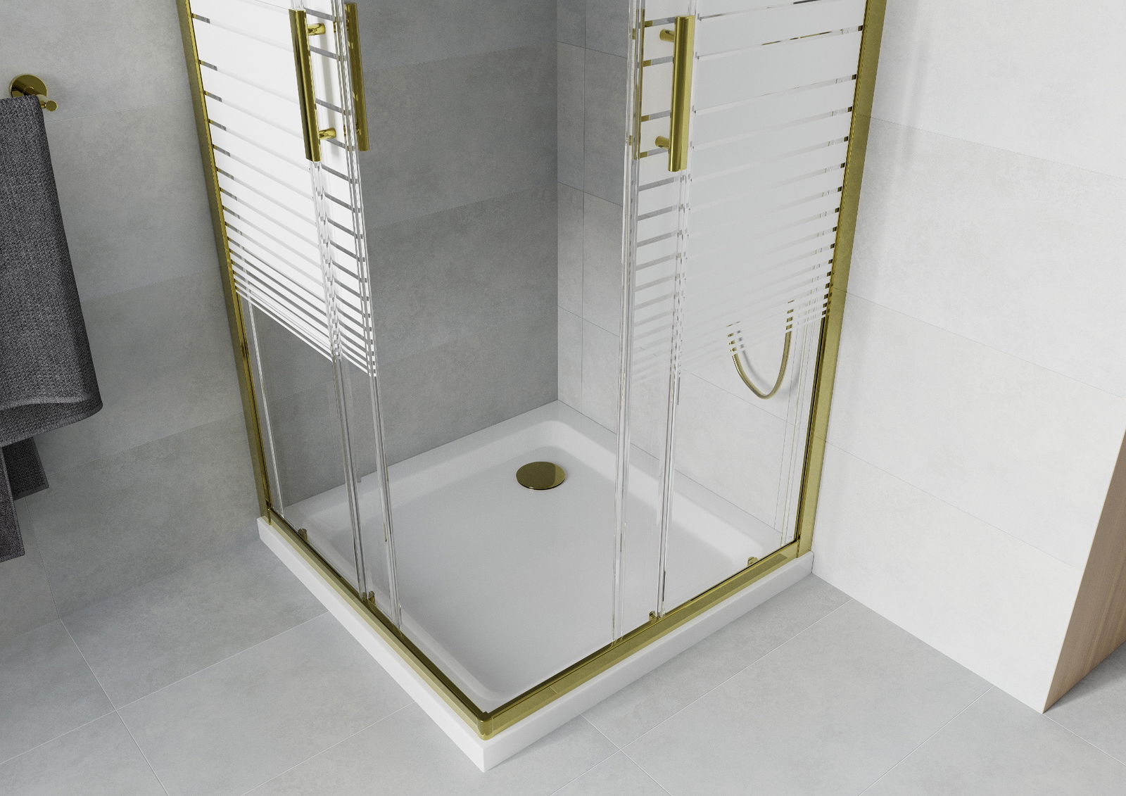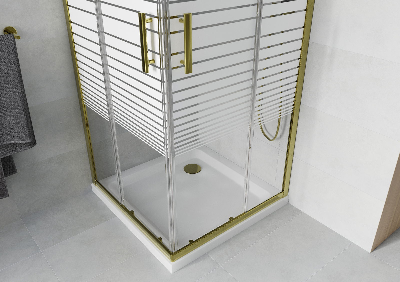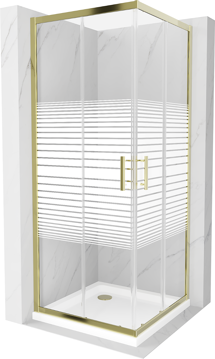 Mexen Rio τετράγωνη καμπίνα ντους 70 x 70 cm, λευκές λωρίδες, χρυσό + ντουζιέρα