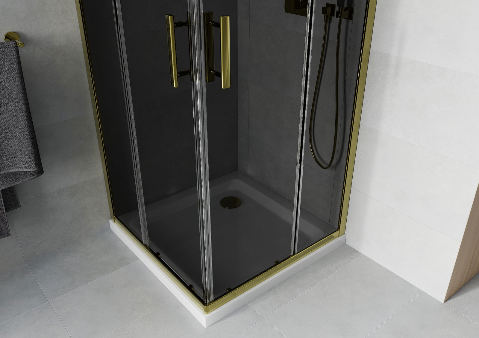 Mexen Rio τετράγωνη καμπίνα ντους 90 x 90 cm, ανθρακί, χρυσό + ντουζιέρα Flat,