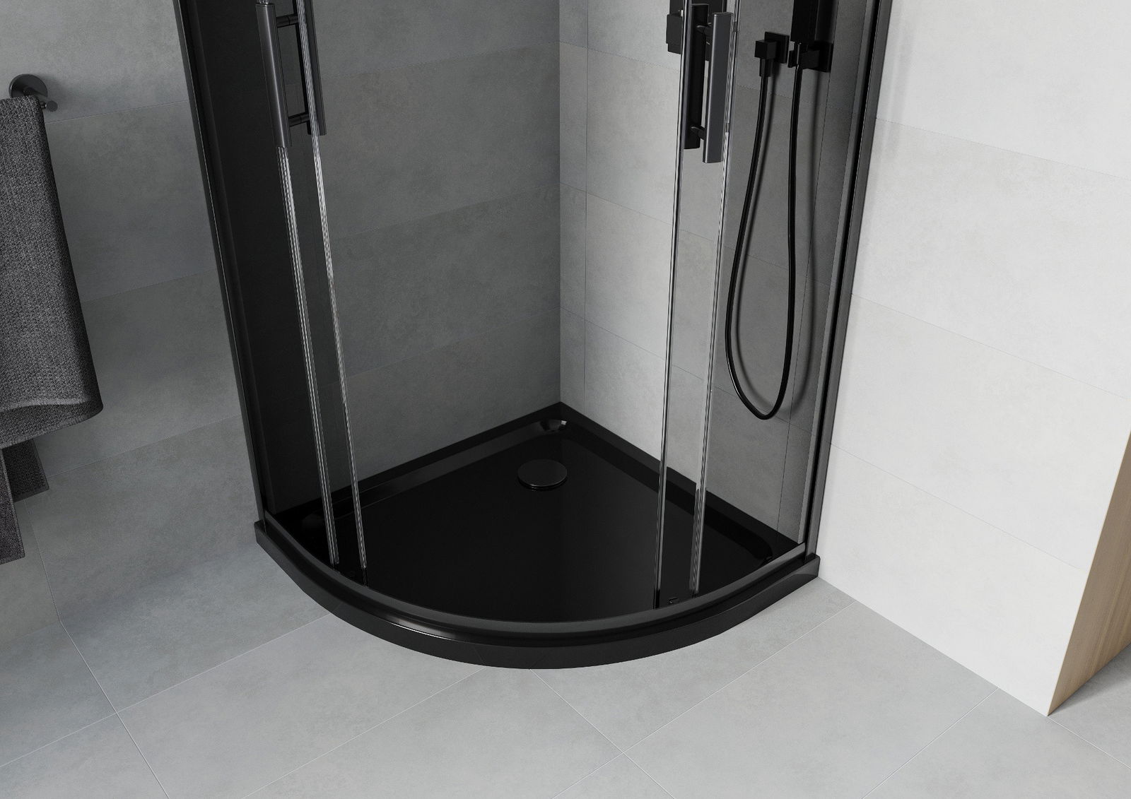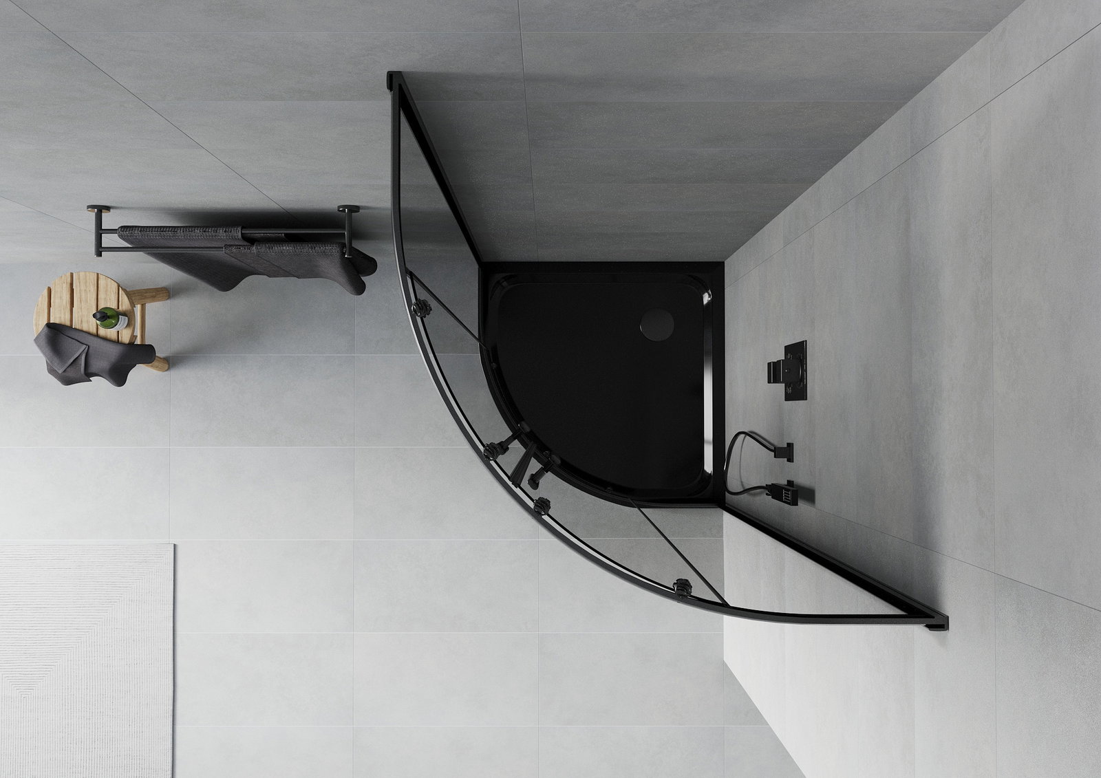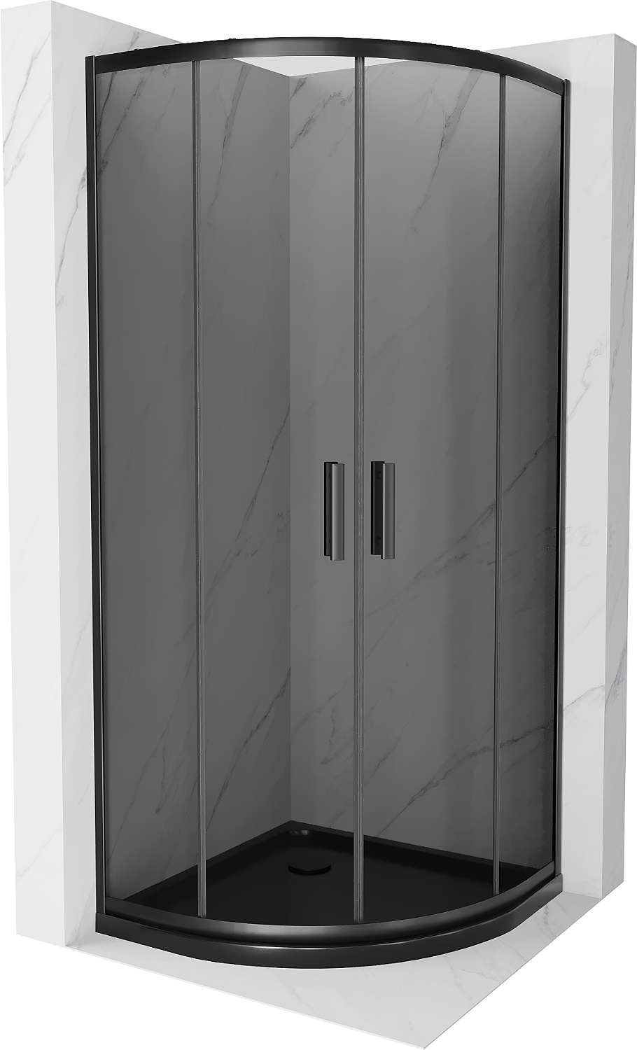Mexen Rio καμπίνα ντους ημικυκλική 80 x 80 cm, γραφίτη, μαύρη + ντουσιέρα Flat,