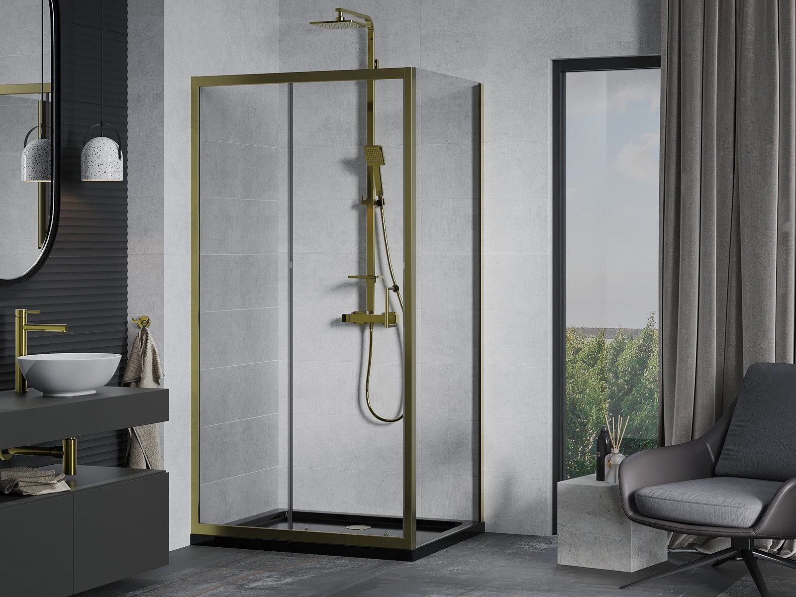 Mexen Apia καμπίνα ντους συρόμενη 110 x 70 cm, διάφανη, χρυσή + ντουζιέρα Flat,