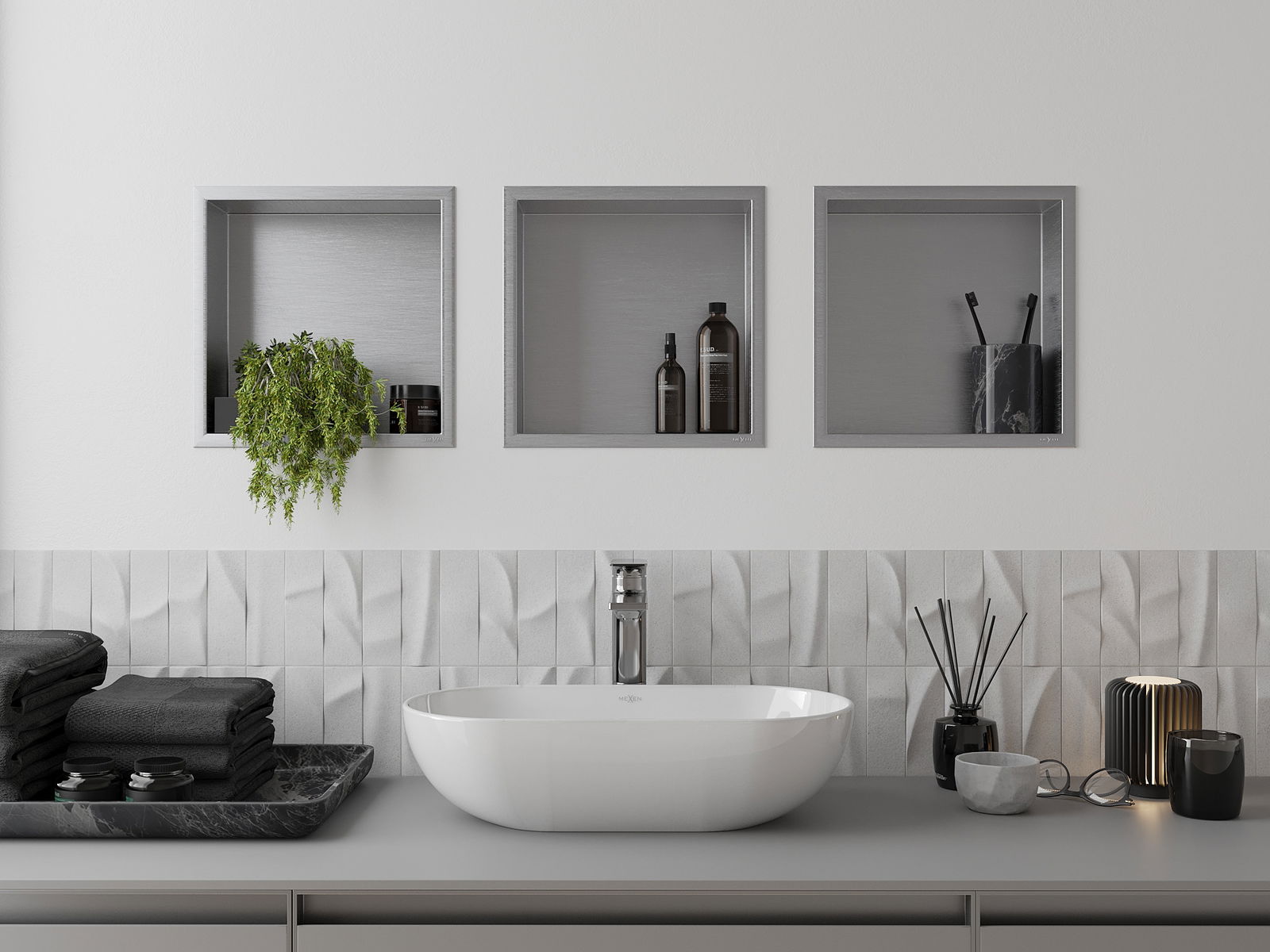 Mexen X-Wall-R ράφι εσοχής με περιλαίμιο 30 x 30 cm, inox - 1910303010