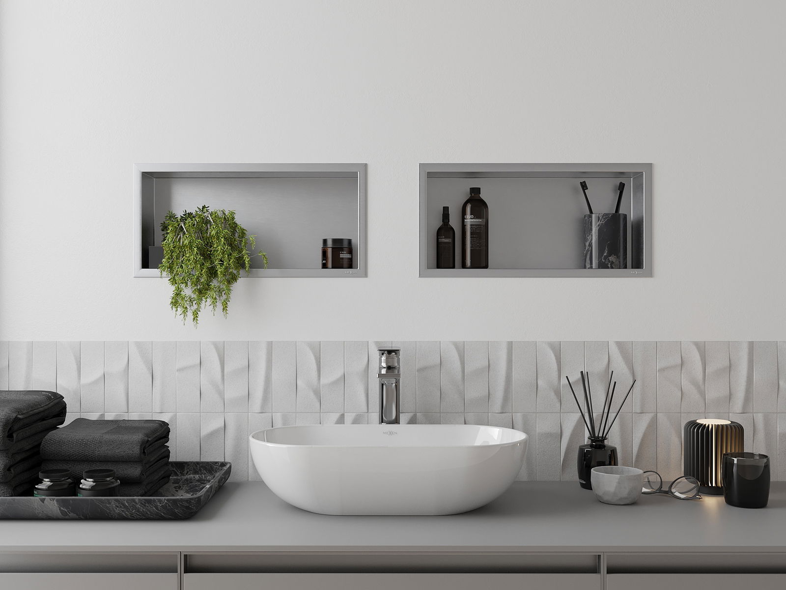 Mexen X-Wall-R ράφι εσοχής με κολάρο 45 x 20 cm, inox - 1910452010