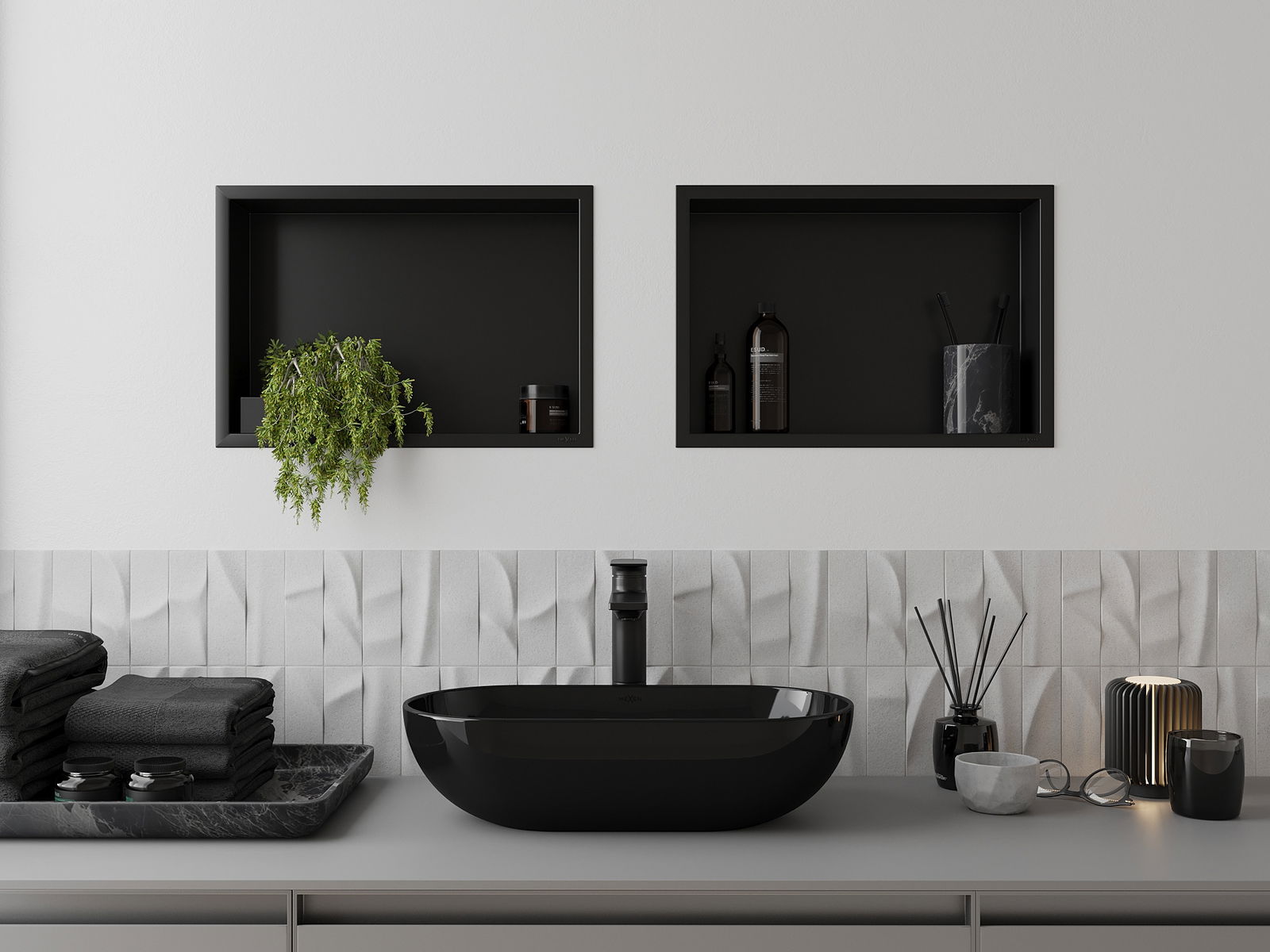 Mexen X-Wall-R ράφι εσοχής με περιλαίμιο 45 x 30 cm, μαύρο - 1970453010