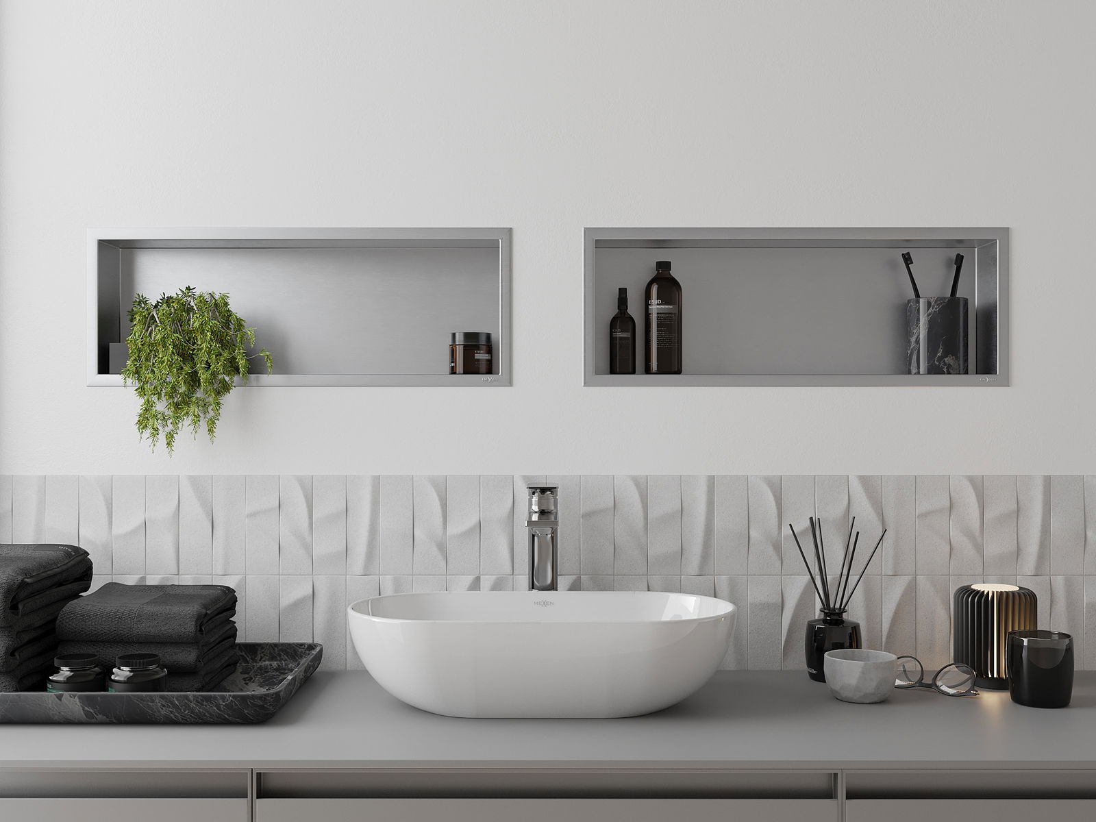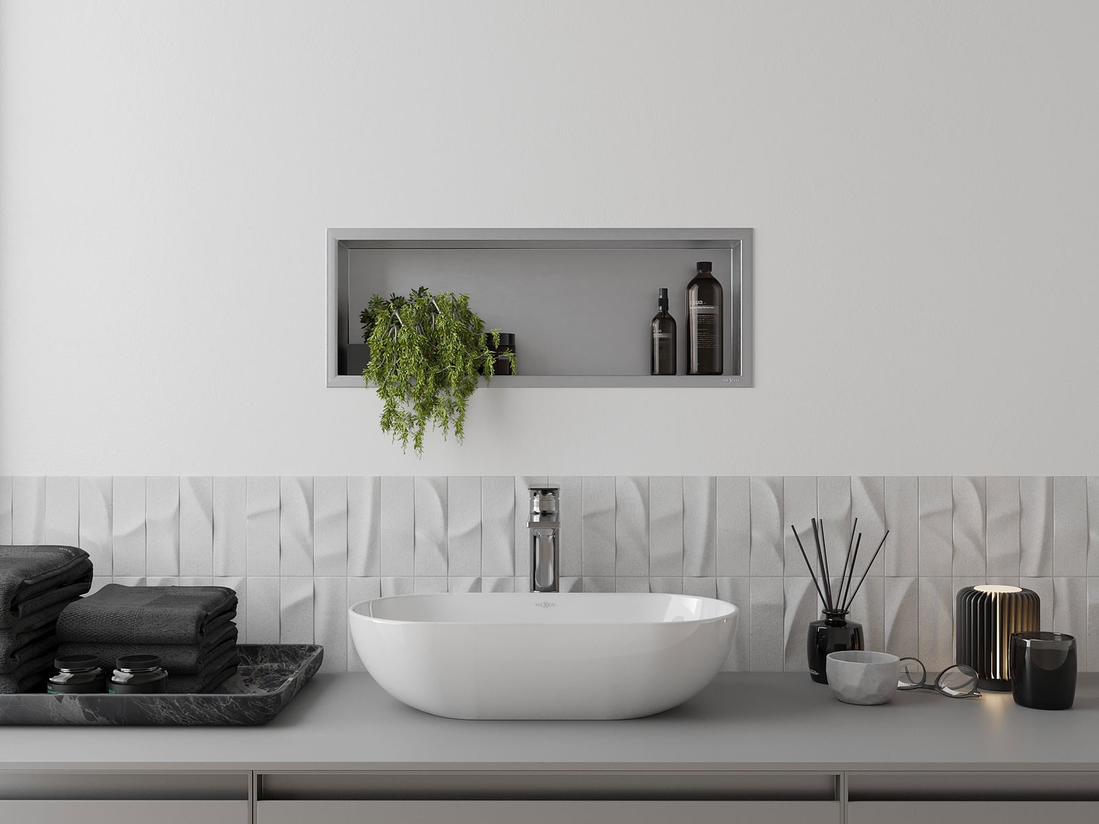 Mexen X-Wall-R ραφιέρα εσοχής με περιλαίμιο 60 x 20 cm, inox - 1910602010