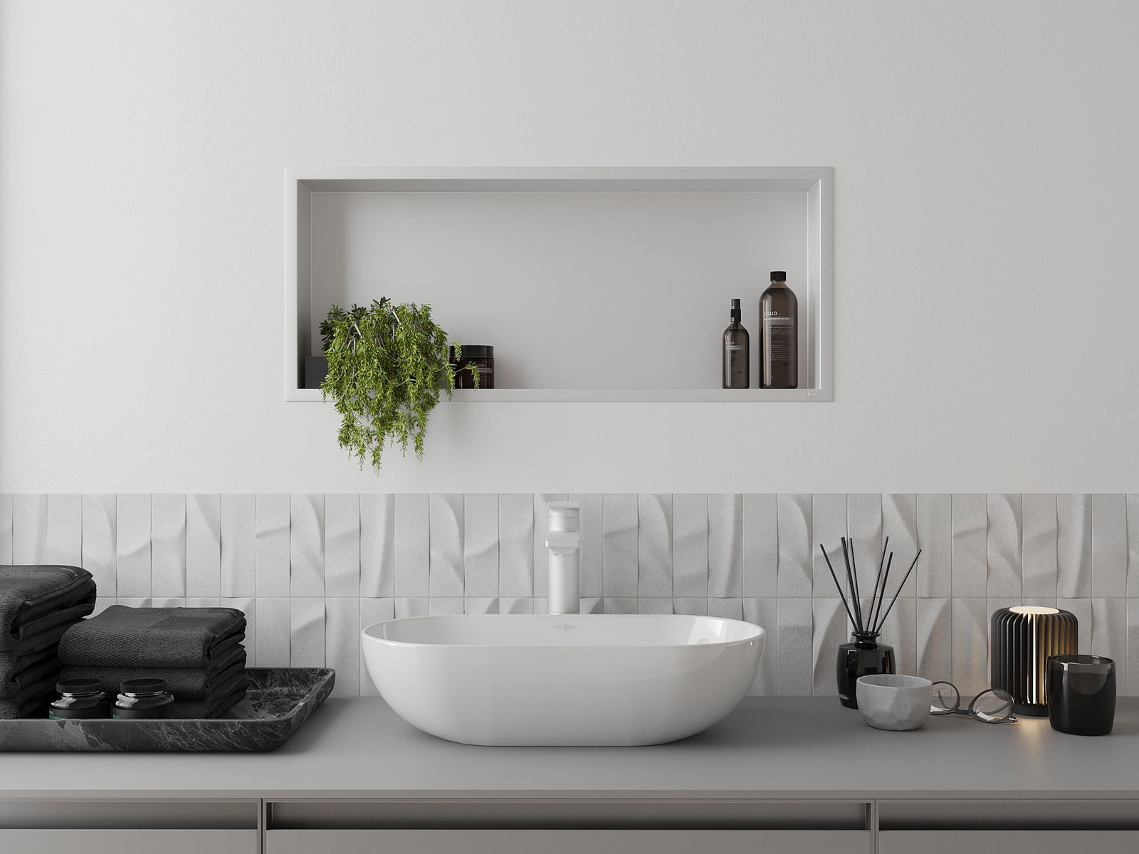 Δυνατότητα εγκατάστασης στον τοίχο ή σε ειδικά προετοιμασμένη κατασκευή. Είναι μια εξαιρετικά σύγχρονη και λειτουργική λύση που επιτρέπει την εξοικονόμηση χώρου και την προσαρμογή του προϊόντος στην αισθητική του εσωτερικού και τη δημιουργία μιας ενοποιημένης σύνθεσης.