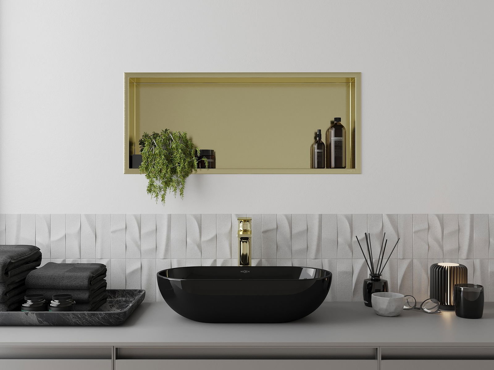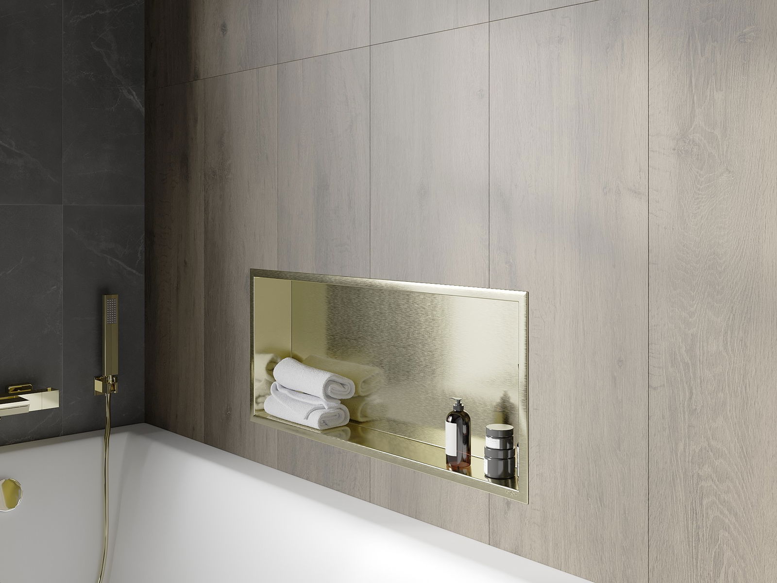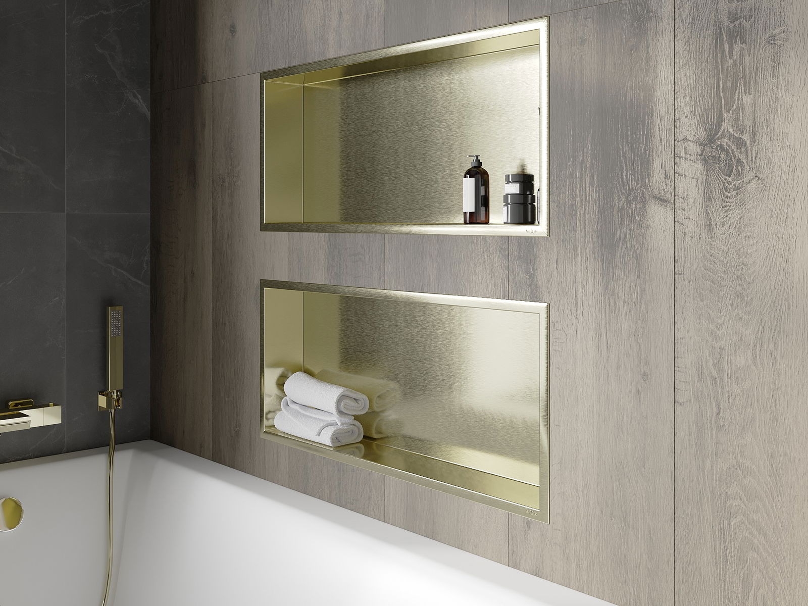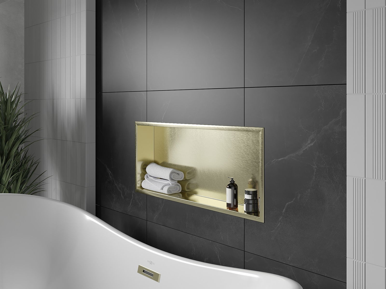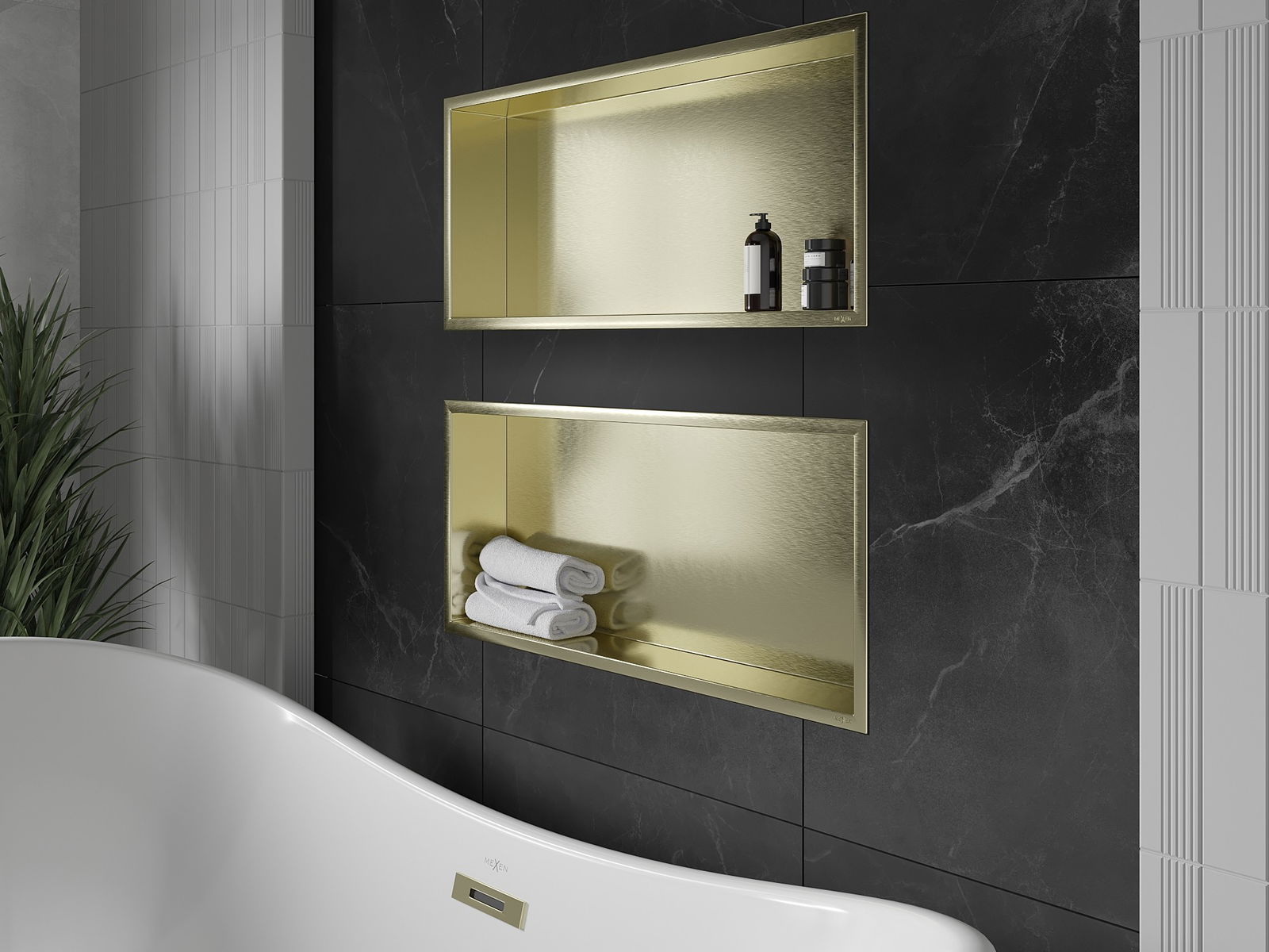 Mexen X-Wall-R εντοιχισμένο ράφι με φλάντζα 75 x 30 εκ., χρυσό βουρτσισμένο
