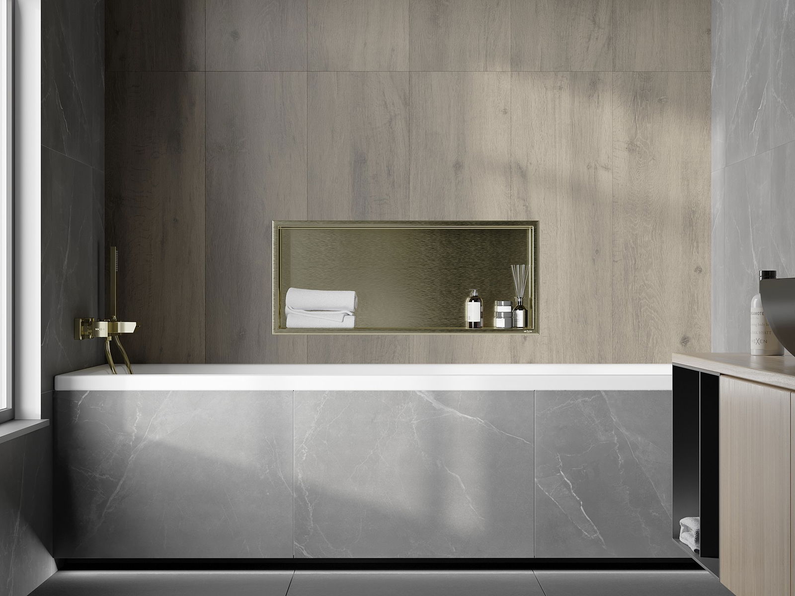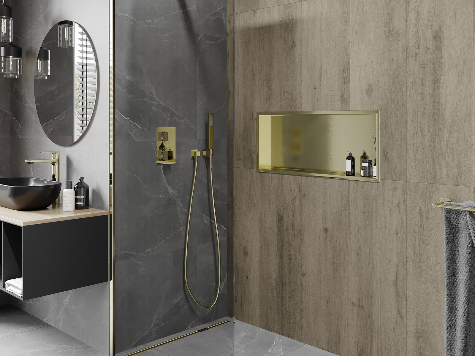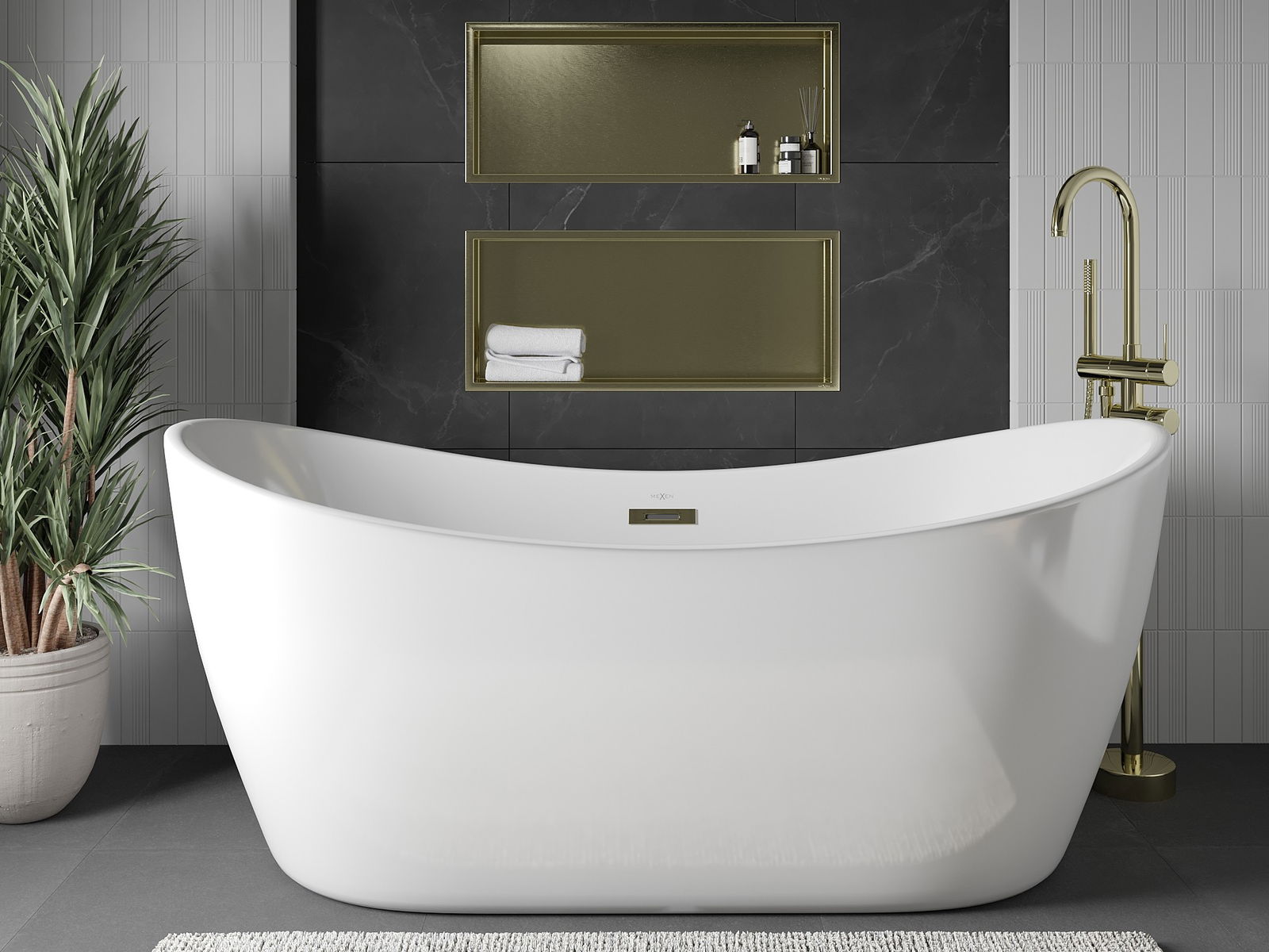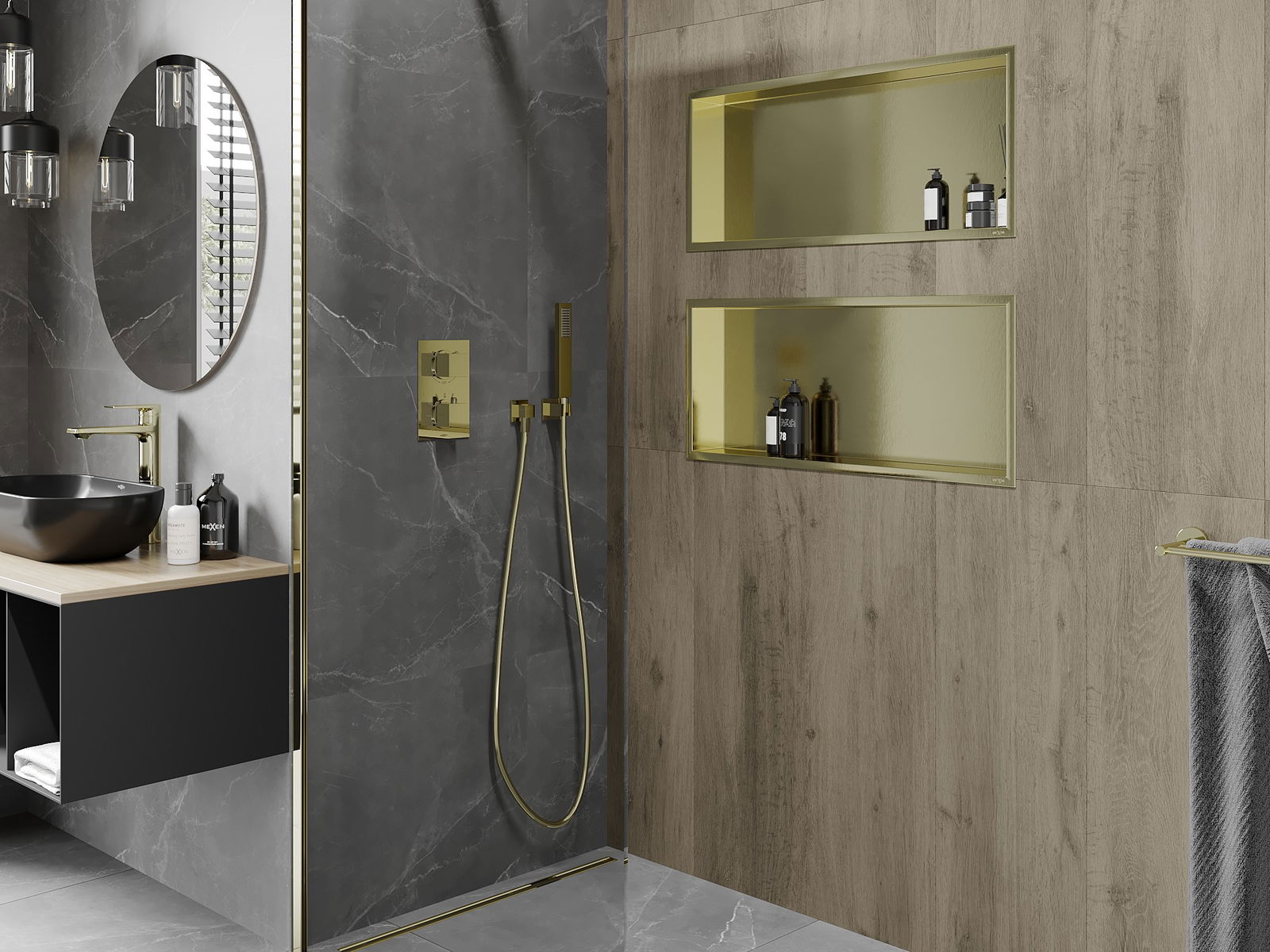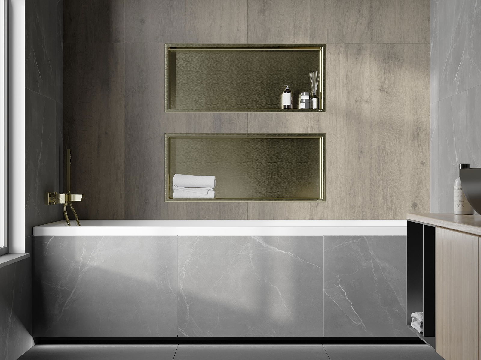 Mexen X-Wall-R εντοιχισμένο ράφι με φλάντζα 75 x 30 εκ., χρυσό βουρτσισμένο