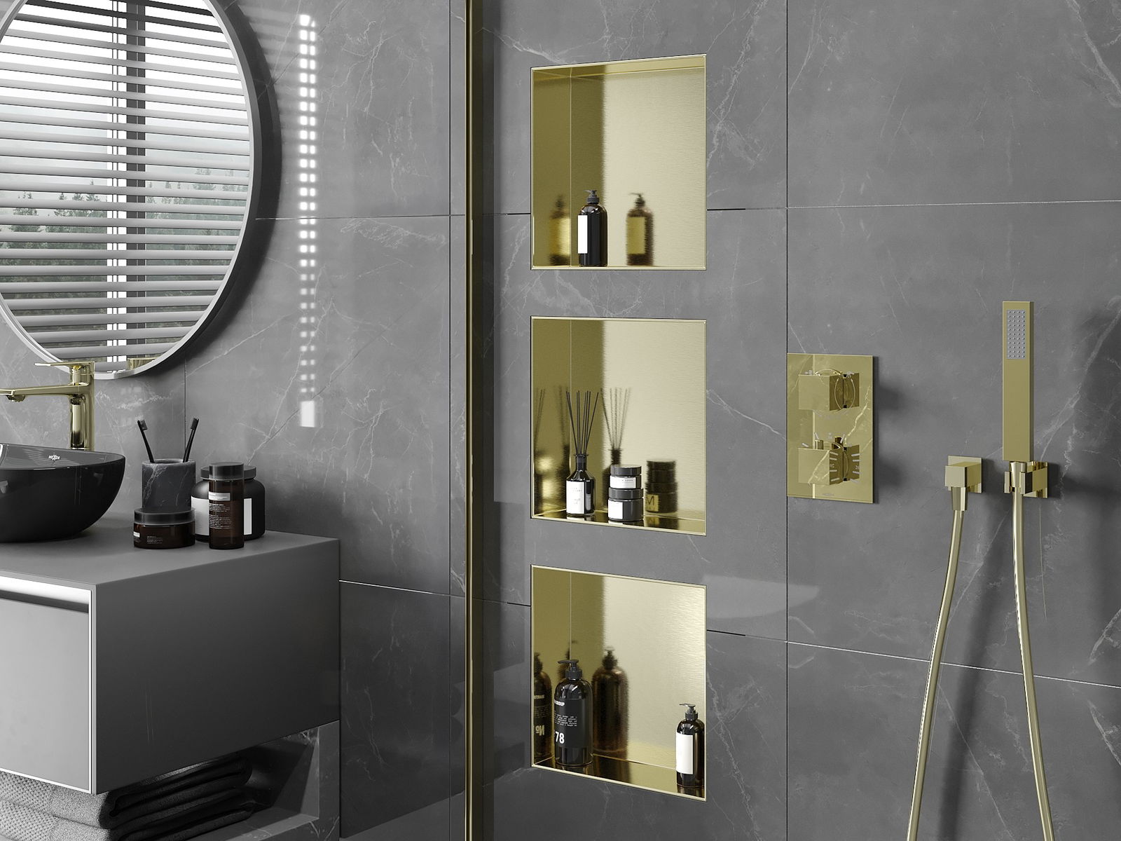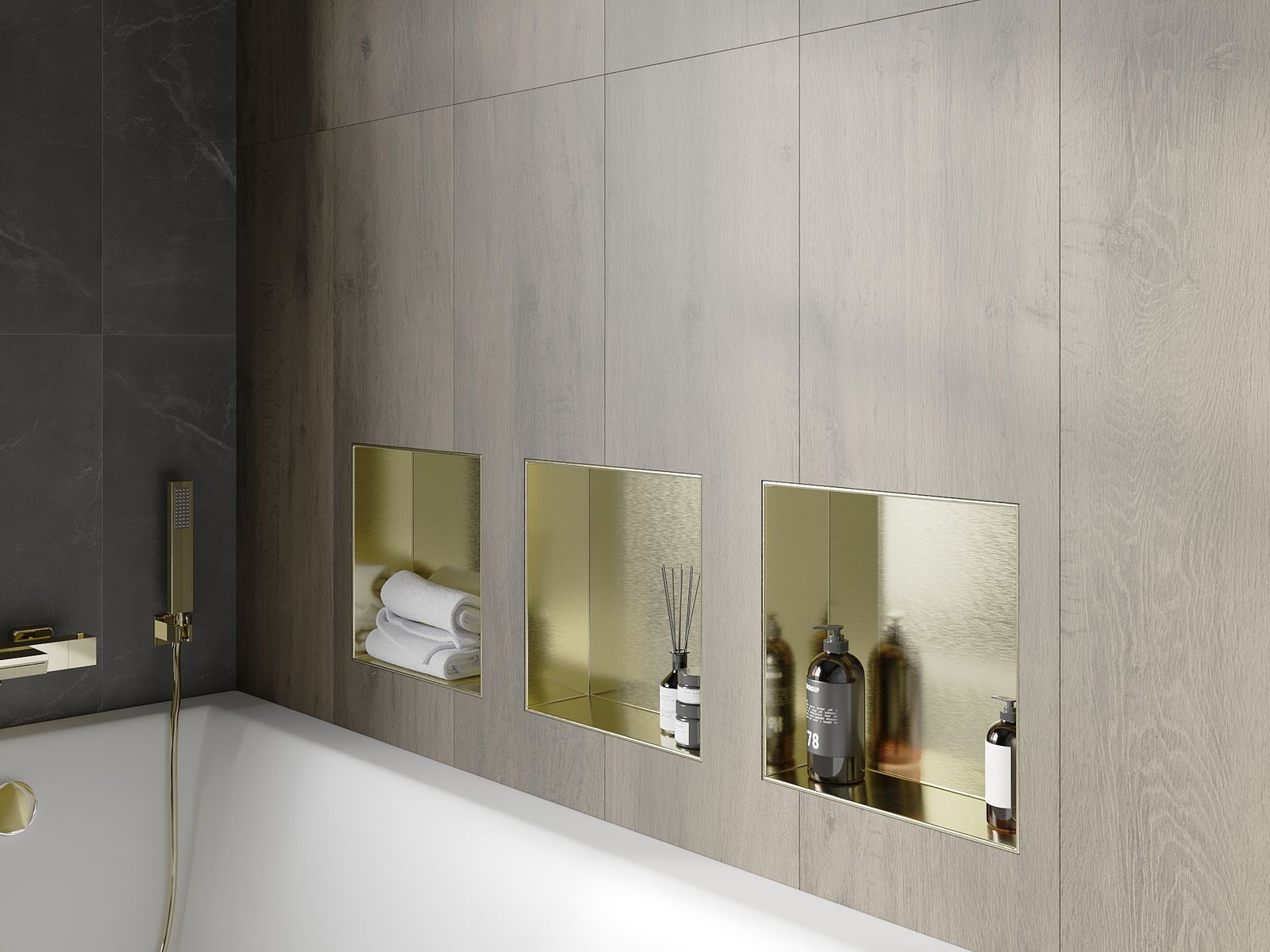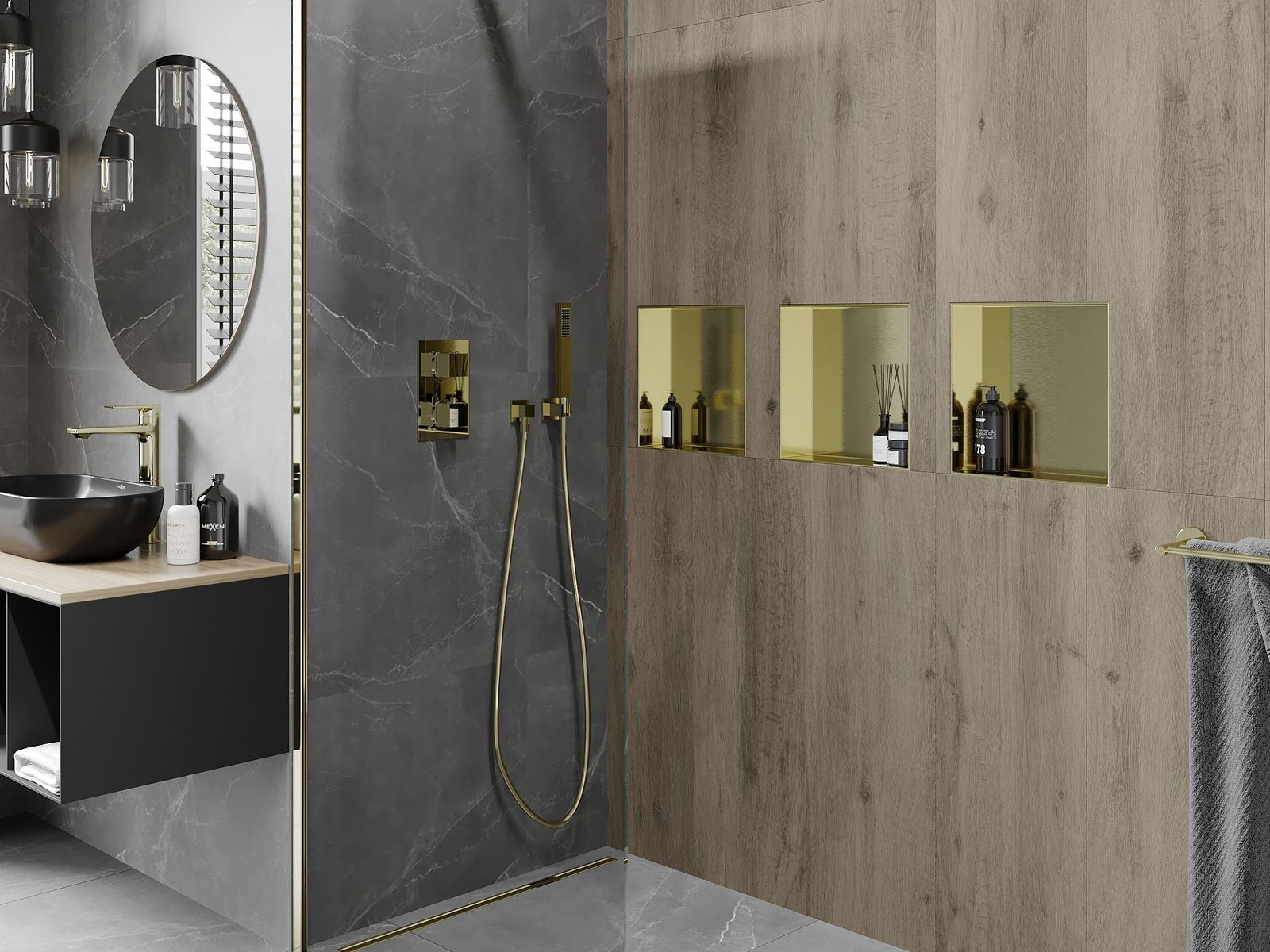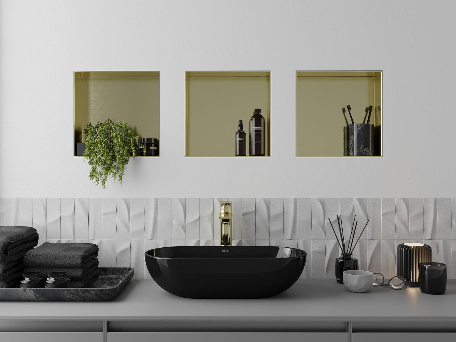 Mexen X-Wall-NR ράφι ένθεσης χωρίς φλάντζα 30 x 30 εκ., χρυσό βουρτσισμένο