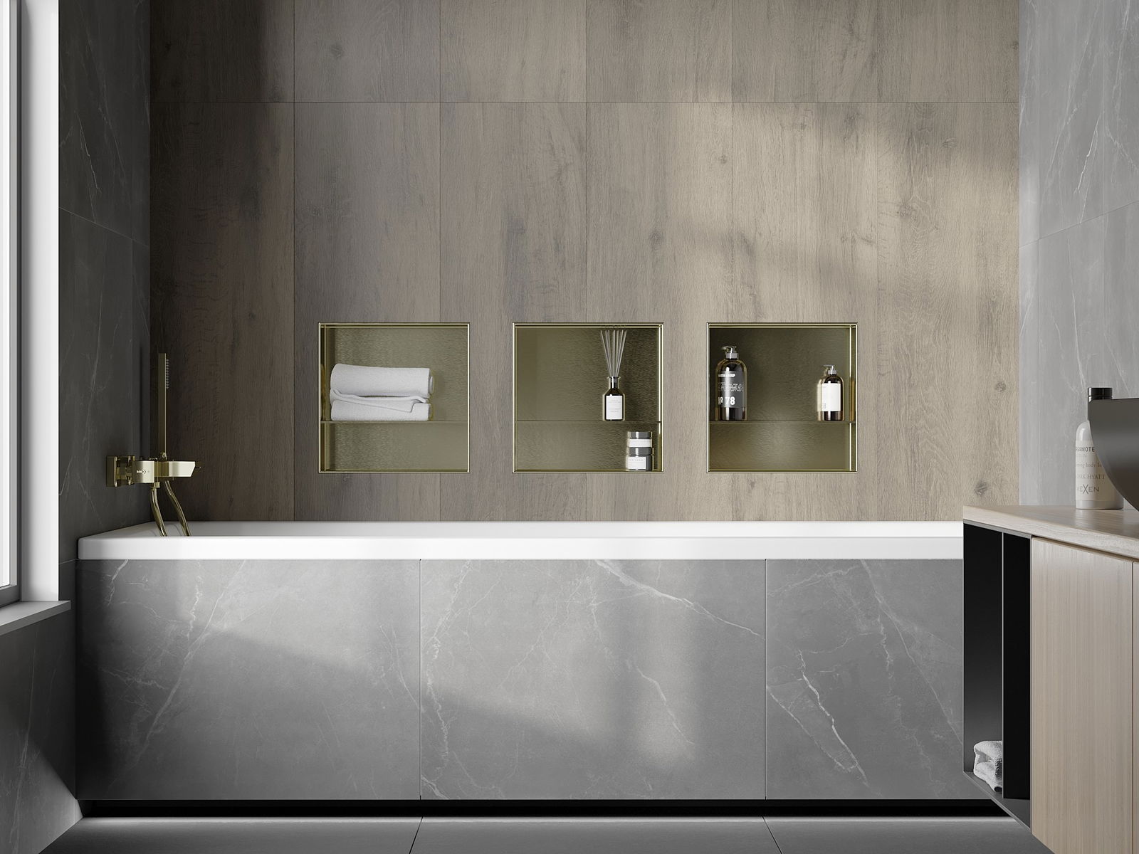 Δυνατότητα εγκατάστασης στον τοίχο ή σε ειδικά προετοιμασμένη κατασκευή. Είναι μια εξαιρετικά σύγχρονη και λειτουργική λύση που επιτρέπει την εξοικονόμηση χώρου και την προσαρμογή του προϊόντος στην αισθητική του εσωτερικού και τη δημιουργία μιας ενοποιημένης σύνθεσης.