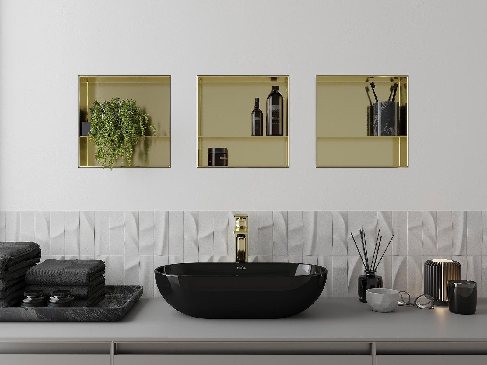 Mexen X-Wall-NR ράφι χωρίς πλαίσιο με ράφι 30 x 30 cm, χρυσό βουρτσισμένο - 1951303010S