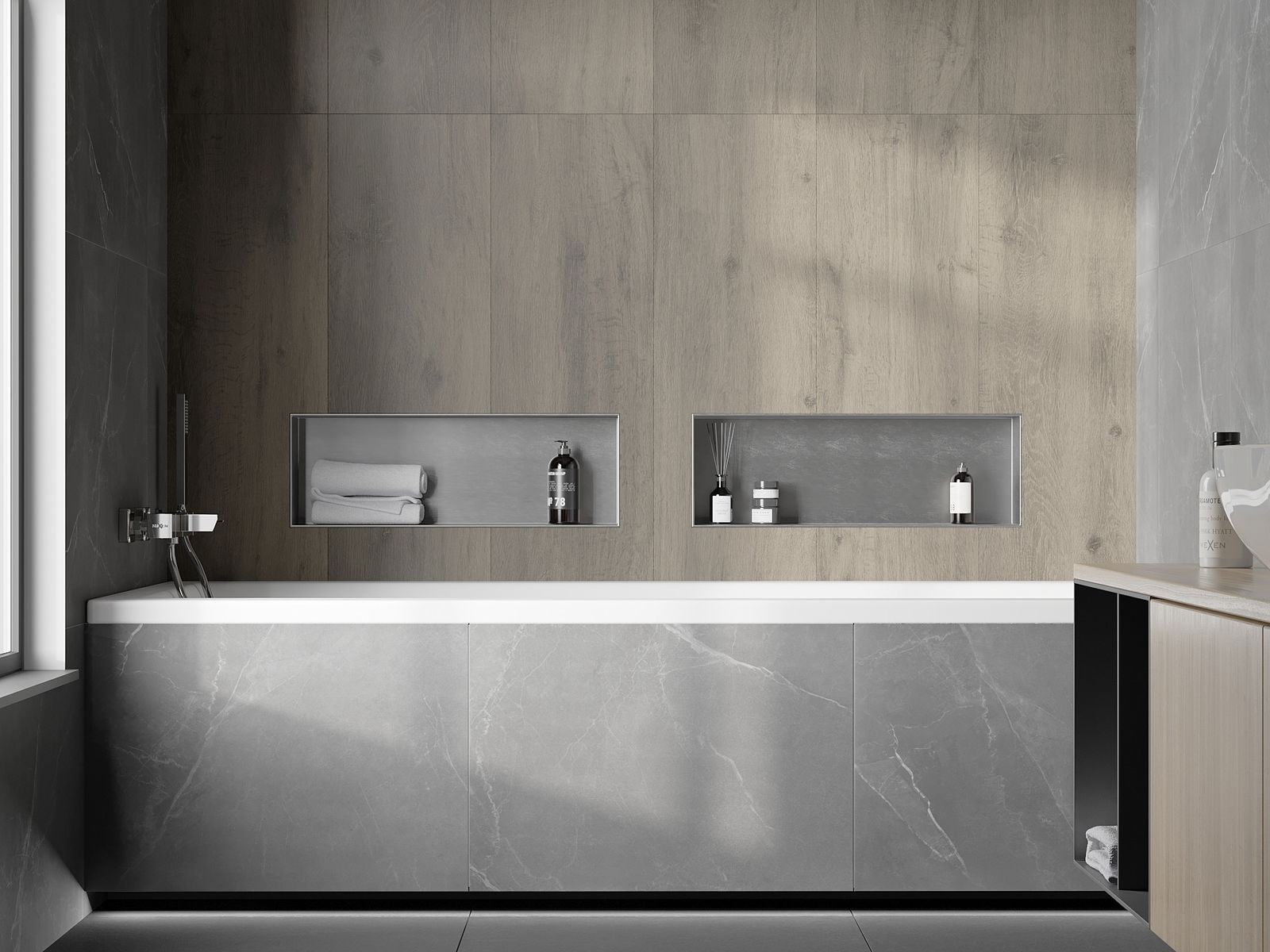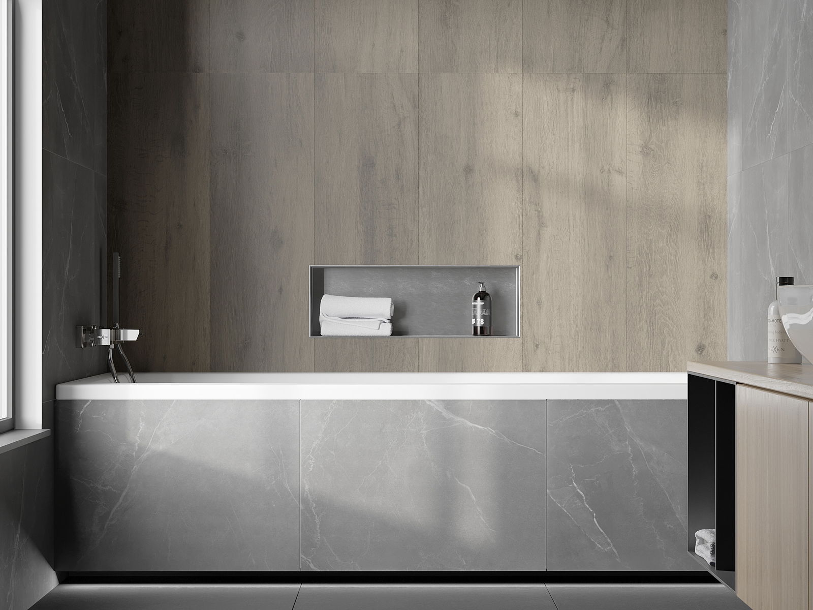 Δυνατότητα εγκατάστασης στον τοίχο ή σε ειδικά προετοιμασμένη κατασκευή. Είναι μια εξαιρετικά σύγχρονη και λειτουργική λύση που επιτρέπει την εξοικονόμηση χώρου και την προσαρμογή του προϊόντος στην αισθητική του εσωτερικού και τη δημιουργία μιας ενοποιημένης σύνθεσης.