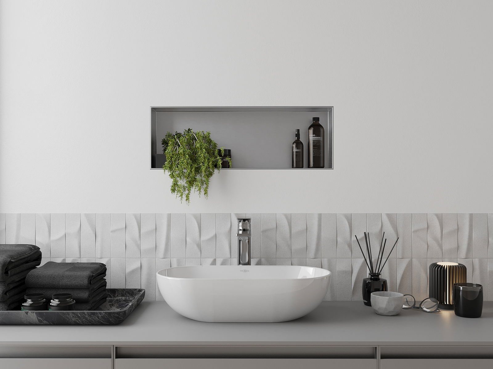 Mexen X-Wall-NR εσοχή ράφι χωρίς φλάντζα 60 x 20 cm, inox - 1911602010