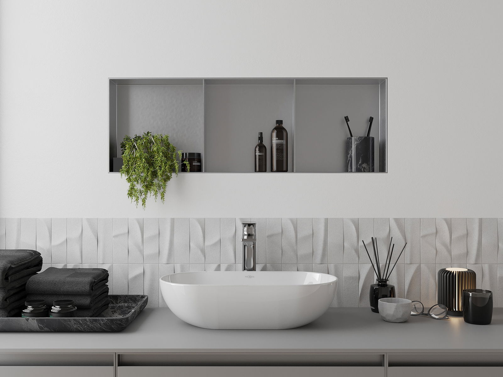 Mexen X-Wall-NR ενσωματωμένο ράφι χωρίς φλάντζα με ράφι 90 x 30 cm, ανοξείδωτο