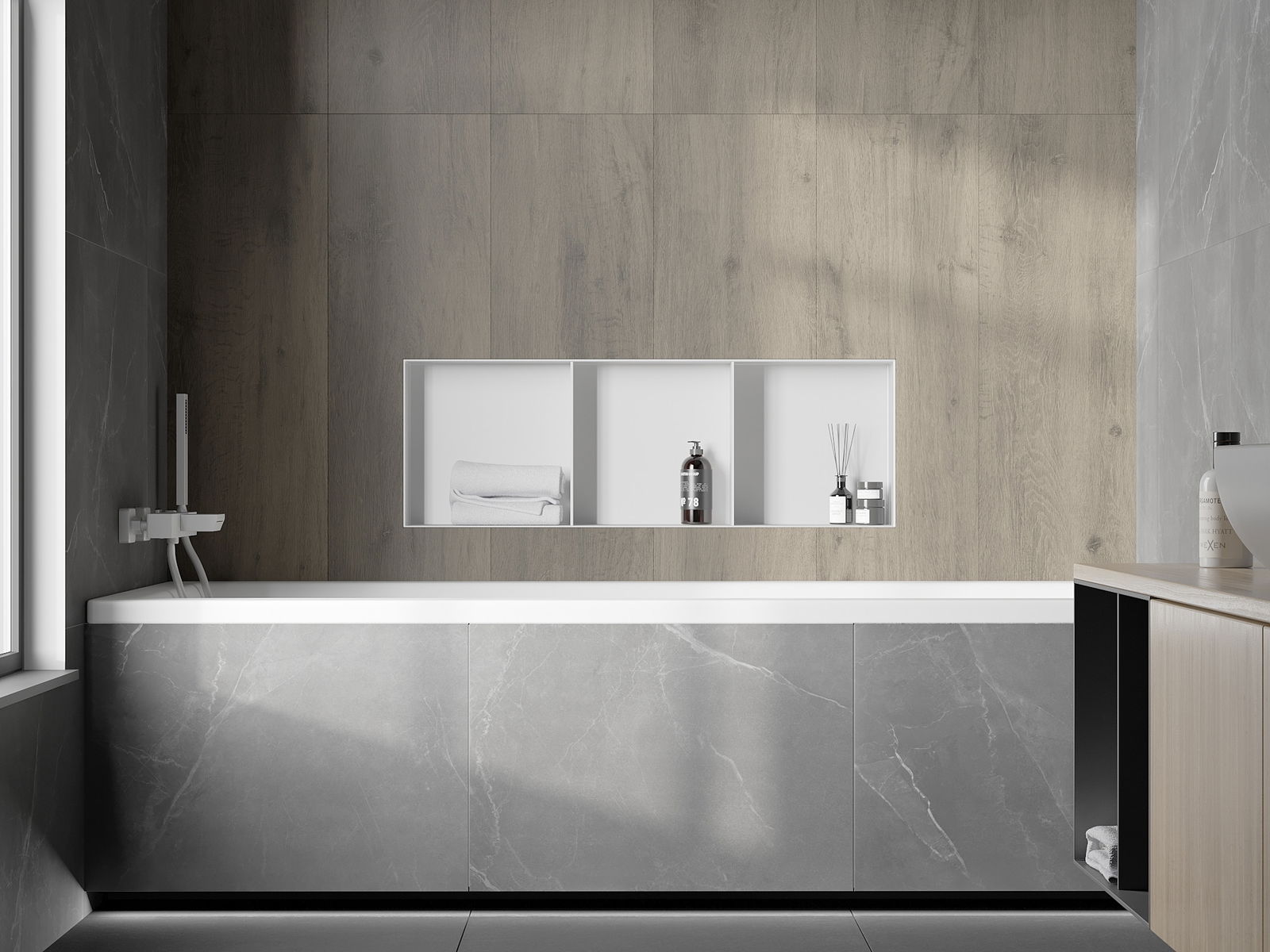 Δυνατότητα εγκατάστασης στον τοίχο ή σε ειδικά προετοιμασμένη κατασκευή. Είναι μια εξαιρετικά σύγχρονη και λειτουργική λύση που επιτρέπει την εξοικονόμηση χώρου και την προσαρμογή του προϊόντος στην αισθητική του εσωτερικού και τη δημιουργία μιας ενοποιημένης σύνθεσης.