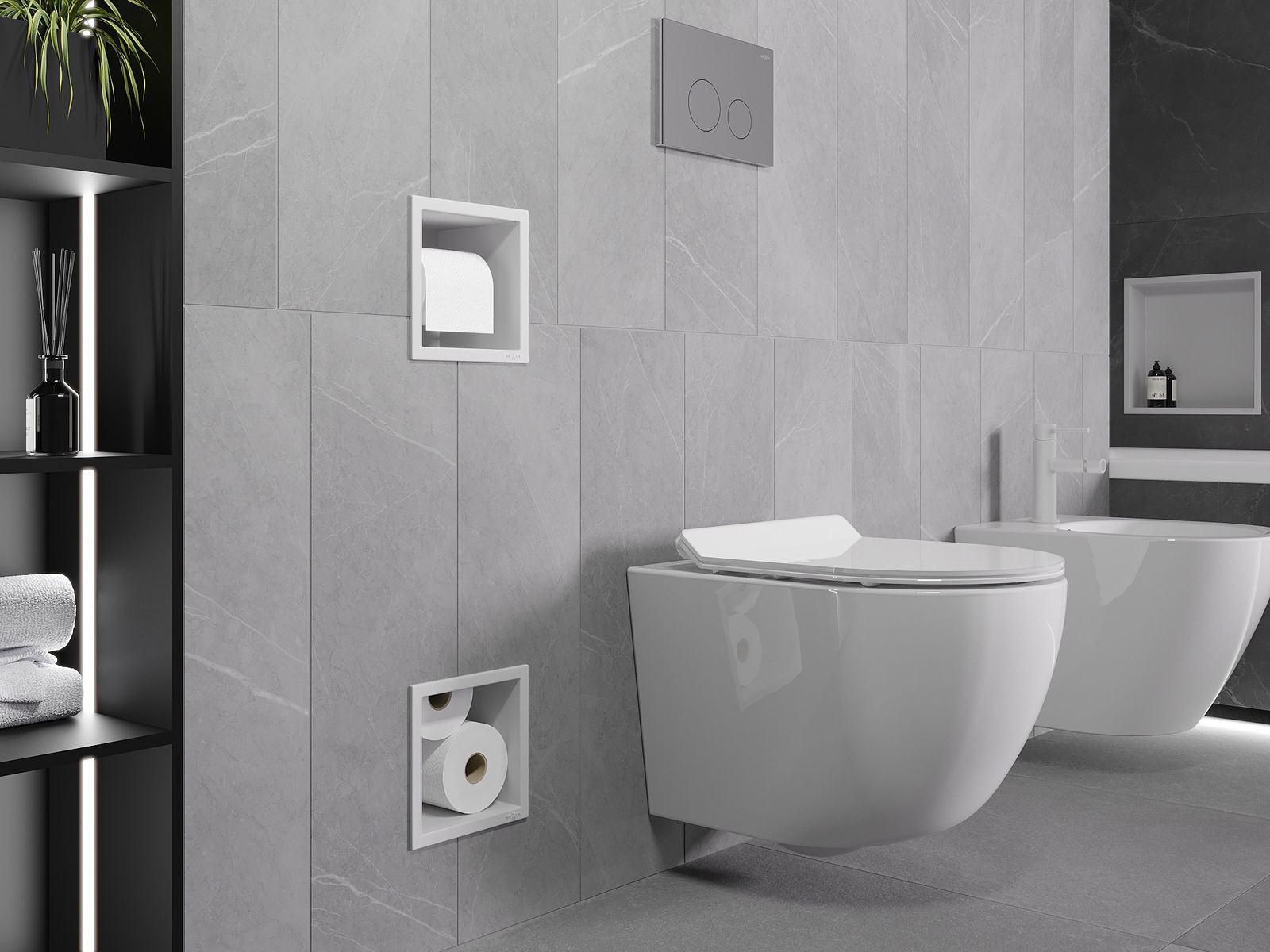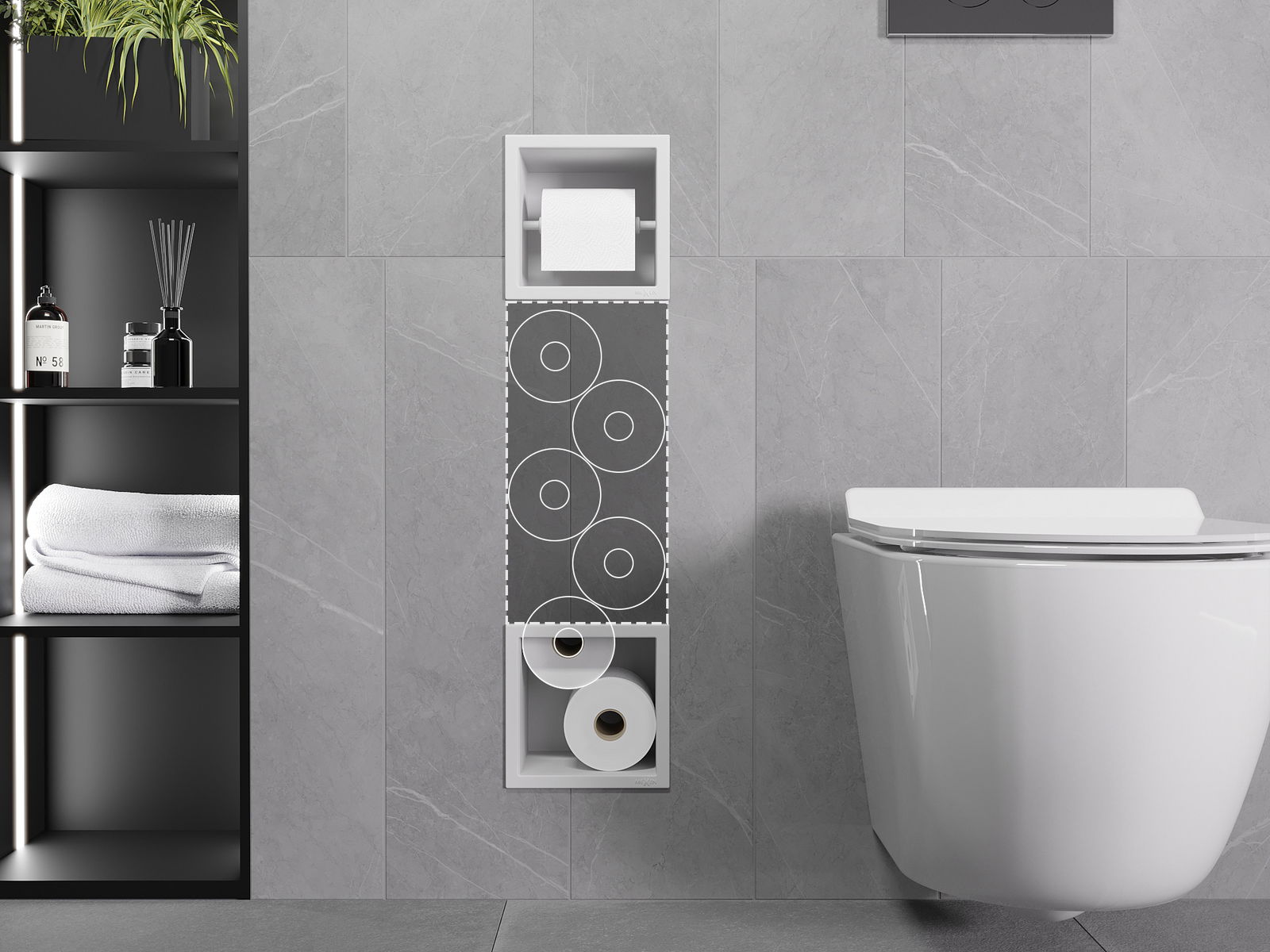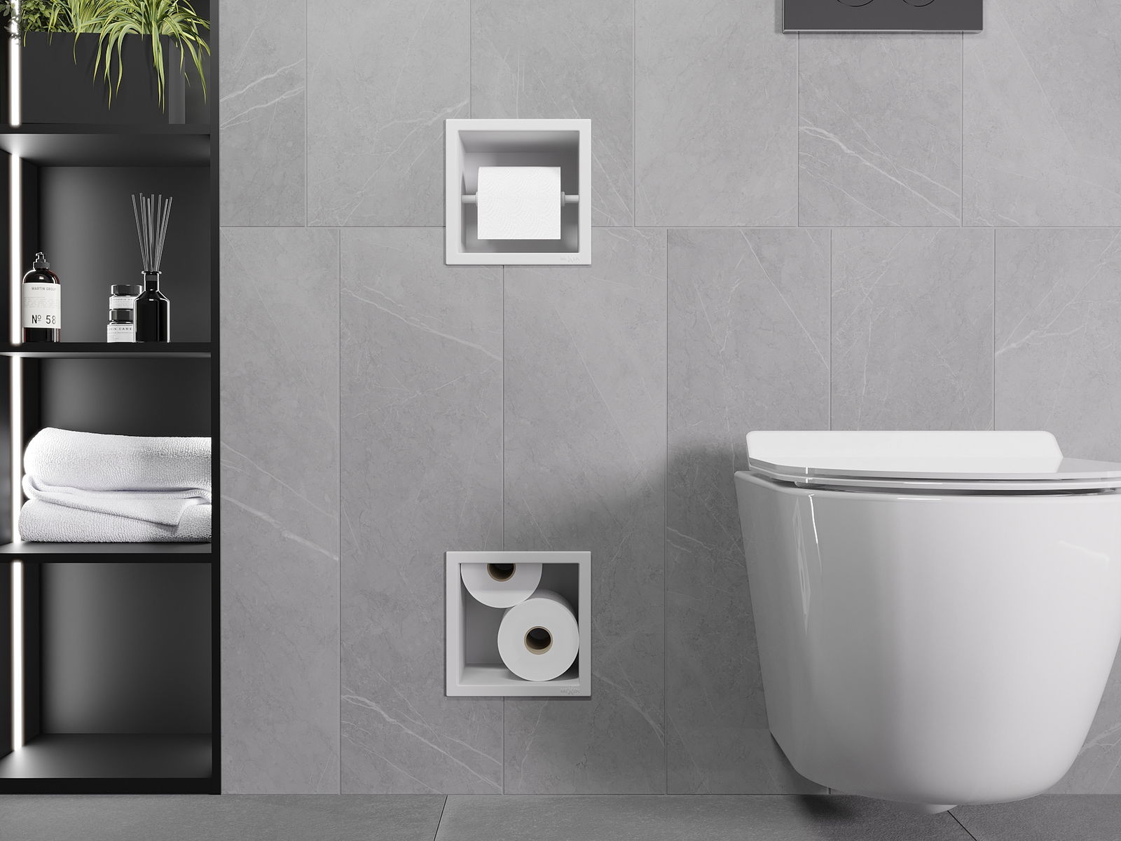 Το X-wall είναι μια πρακτική θήκη χαρτιού υγείας με ενσωματωμένη θήκη στον τοίχο. Το νέο ρολό είναι πάντα σε κοντινή απόσταση και ο χώρος που προηγουμένως ήταν αφιερωμένος στην αποθήκευση χαρτιού υγείας μπορεί να χρησιμοποιηθεί διαφορετικά.