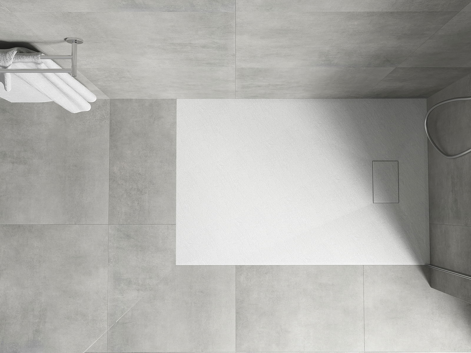 Η επιφάνεια της ντουζιέρας με τη δομή της θυμίζει πέτρα. Αποτελεί έναν εξαιρετικό συνδυασμό φυσικής εμφάνισης με σύγχρονη εσωτερική διαρρύθμιση. Προσθέτει χαρακτήρα, υπογραμμίζει την αισθητική και την κομψότητα της διακόσμησης του μπάνιου και εντυπωσιάζει με τη μορφή της.