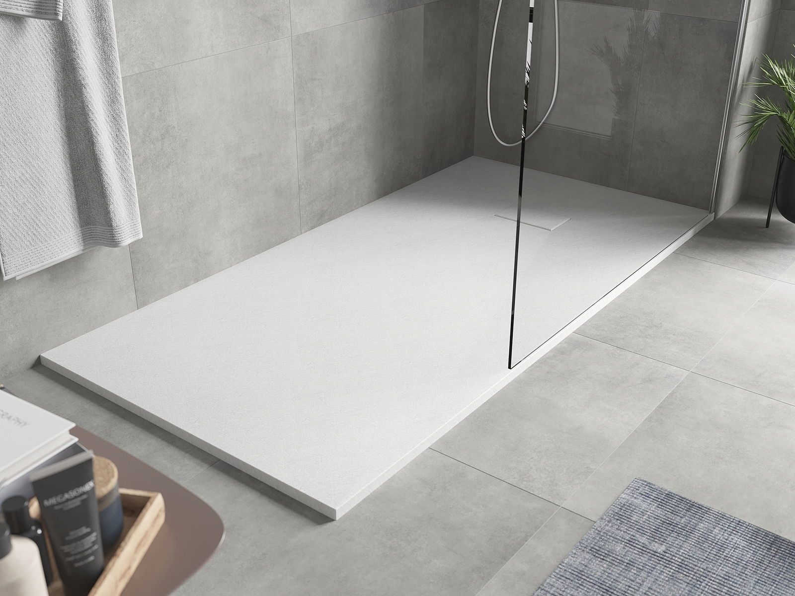 Η επιφάνεια της ντουζιέρας με τη δομή της θυμίζει πέτρα. Αποτελεί έναν εξαιρετικό συνδυασμό φυσικής εμφάνισης με σύγχρονη εσωτερική διαρρύθμιση. Προσθέτει χαρακτήρα, υπογραμμίζει την αισθητική και την κομψότητα της διακόσμησης του μπάνιου και εντυπωσιάζει με τη μορφή της.