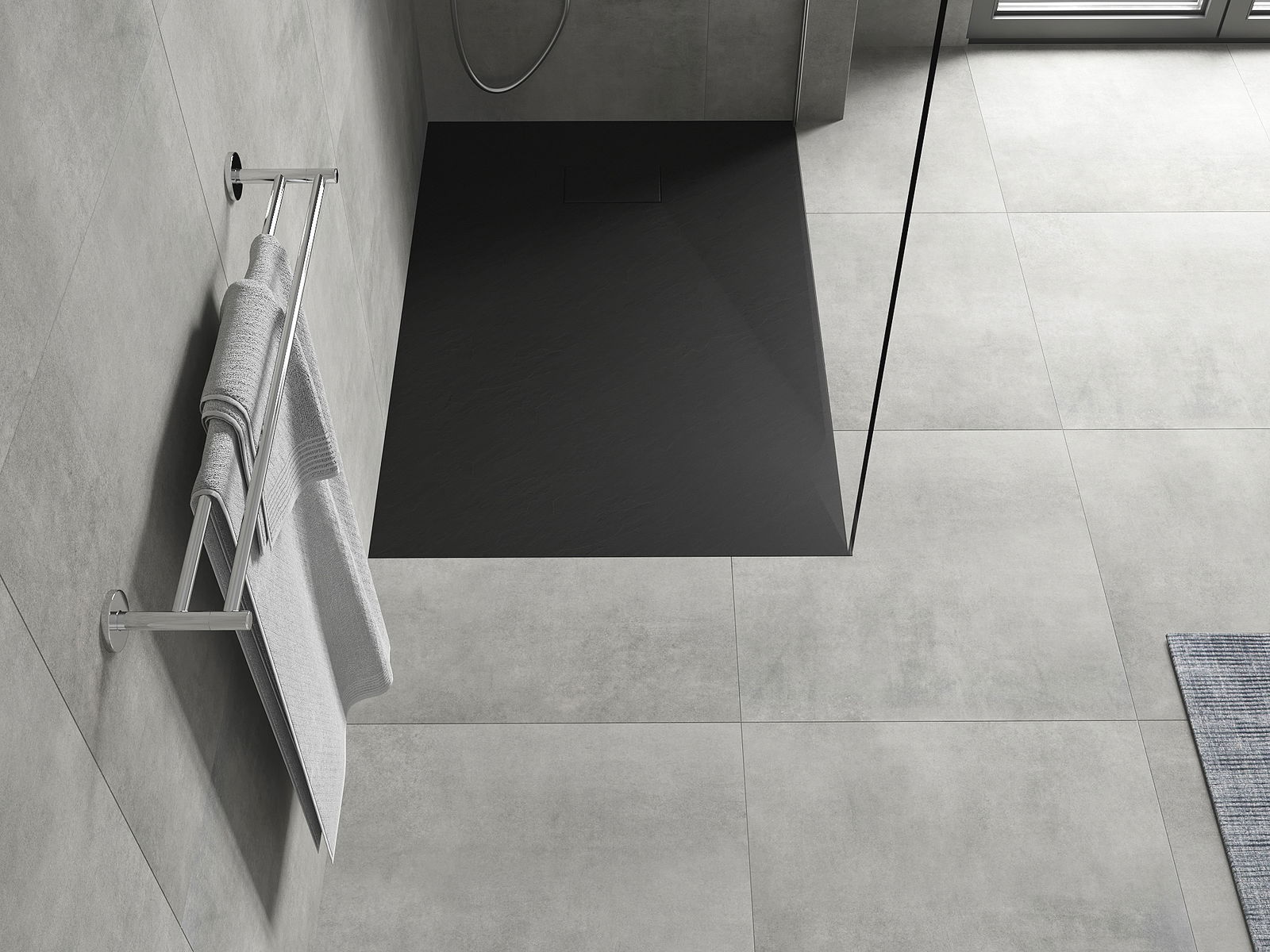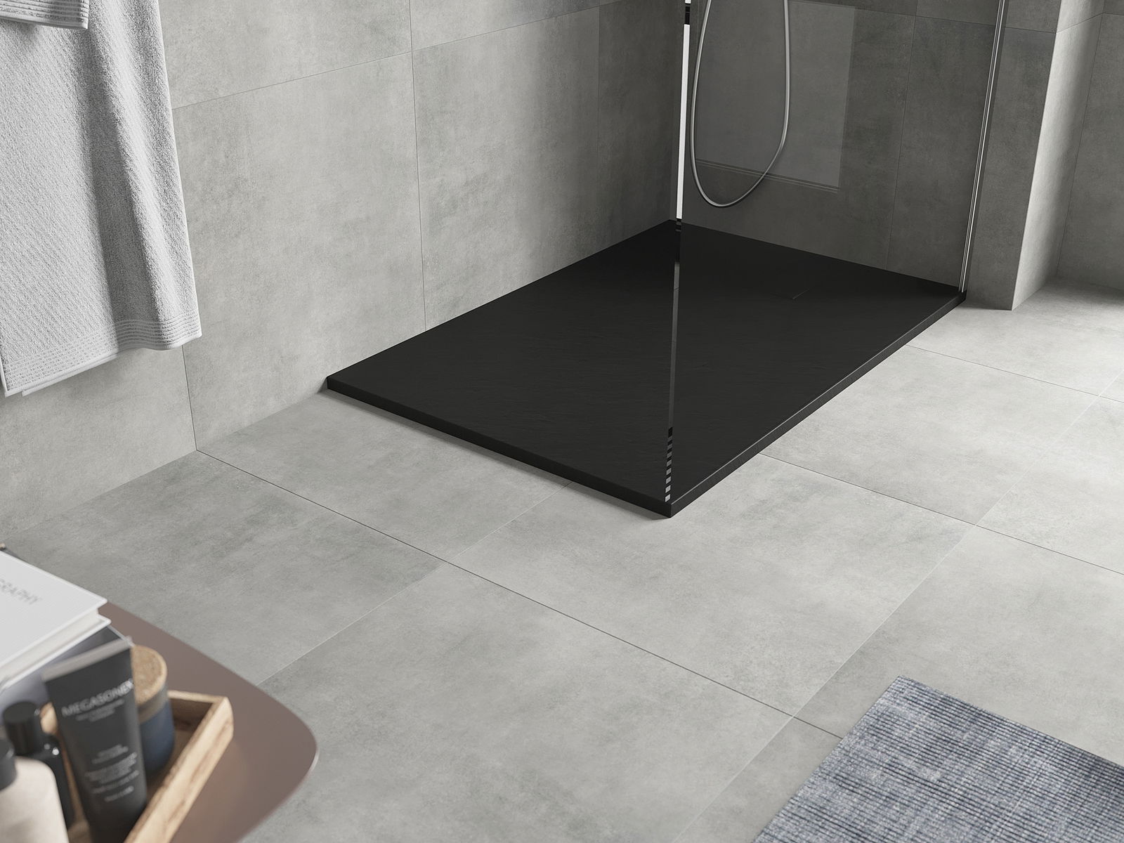 Η επιφάνεια της ντουζιέρας με τη δομή της θυμίζει πέτρα. Αποτελεί έναν εξαιρετικό συνδυασμό φυσικής εμφάνισης με σύγχρονη εσωτερική διαρρύθμιση. Προσθέτει χαρακτήρα, υπογραμμίζει την αισθητική και την κομψότητα της διακόσμησης του μπάνιου και εντυπωσιάζει με τη μορφή της.