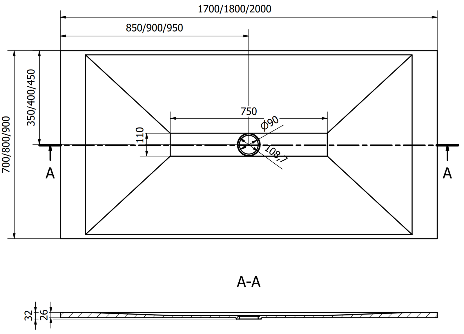 Διάμετρος αποχέτευσης: 90 mm