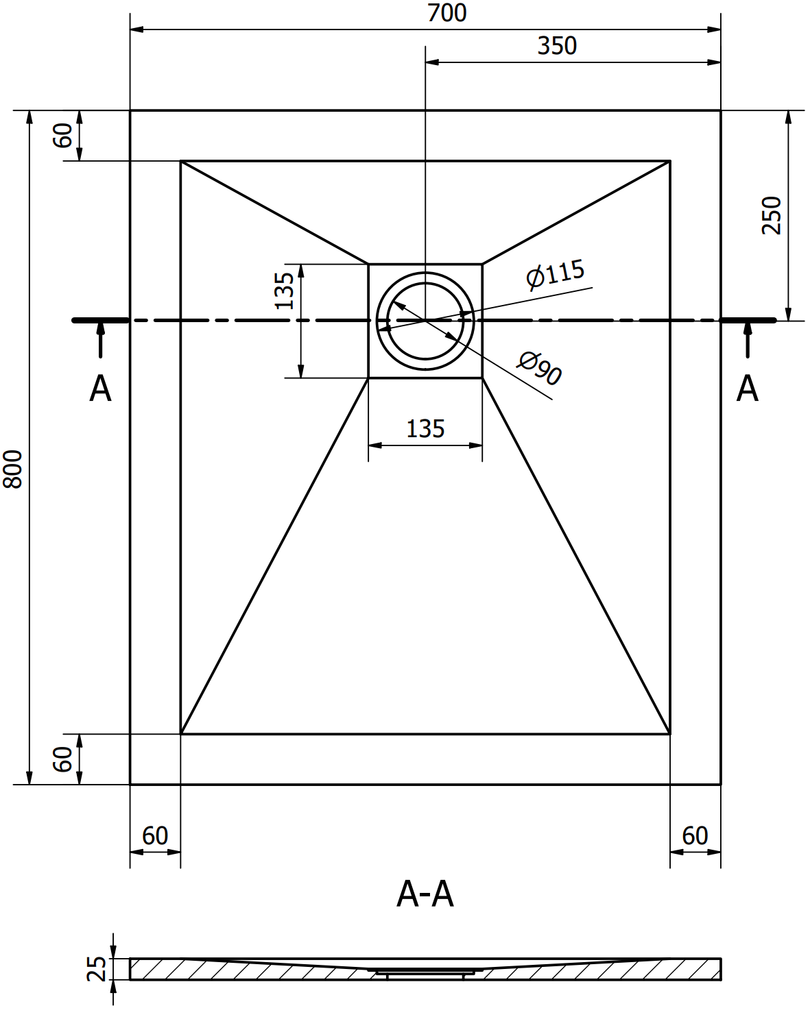 Η ντουζιέρα σχεδιάστηκε με τέτοιο τρόπο ώστε το νερό να μπορεί να ρέει ελεύθερα προς την κατεύθυνση της αποχέτευσης. Παρέχει γρήγορη και αποτελεσματική αποστράγγιση του νερού από την επιφάνεια της ντουζιέρας, αποτρέποντας το σχηματισμό λιμνών και την πλημμύρα του μπάνιου.