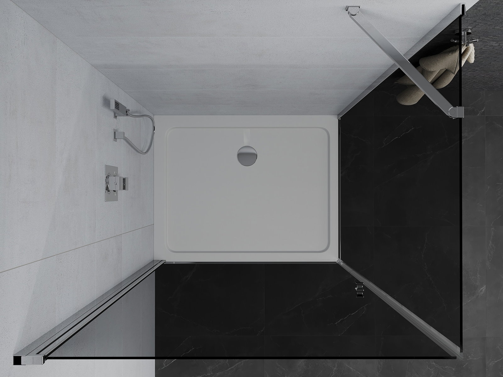Χάρη στη χρήση ενός καθολικού συστήματος στήριξης, οι πόρτες ντους μπορούν να τοποθετηθούν είτε από τη δεξιά είτε από την αριστερή πλευρά, ανάλογα με τις ανάγκες. Έτσι μπορείτε να σχεδιάσετε με ευκολία ένα ντους προσαρμοσμένο στον χώρο του μπάνιου.