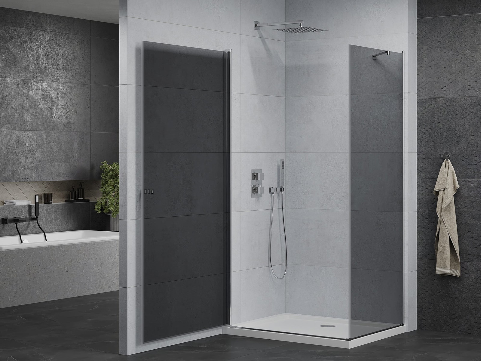 Mexen Pretoria Ανοιγόμενη καμπίνα ντους 90 x 120 cm, γραφίτης, χρώμιο + ντουζιέρα