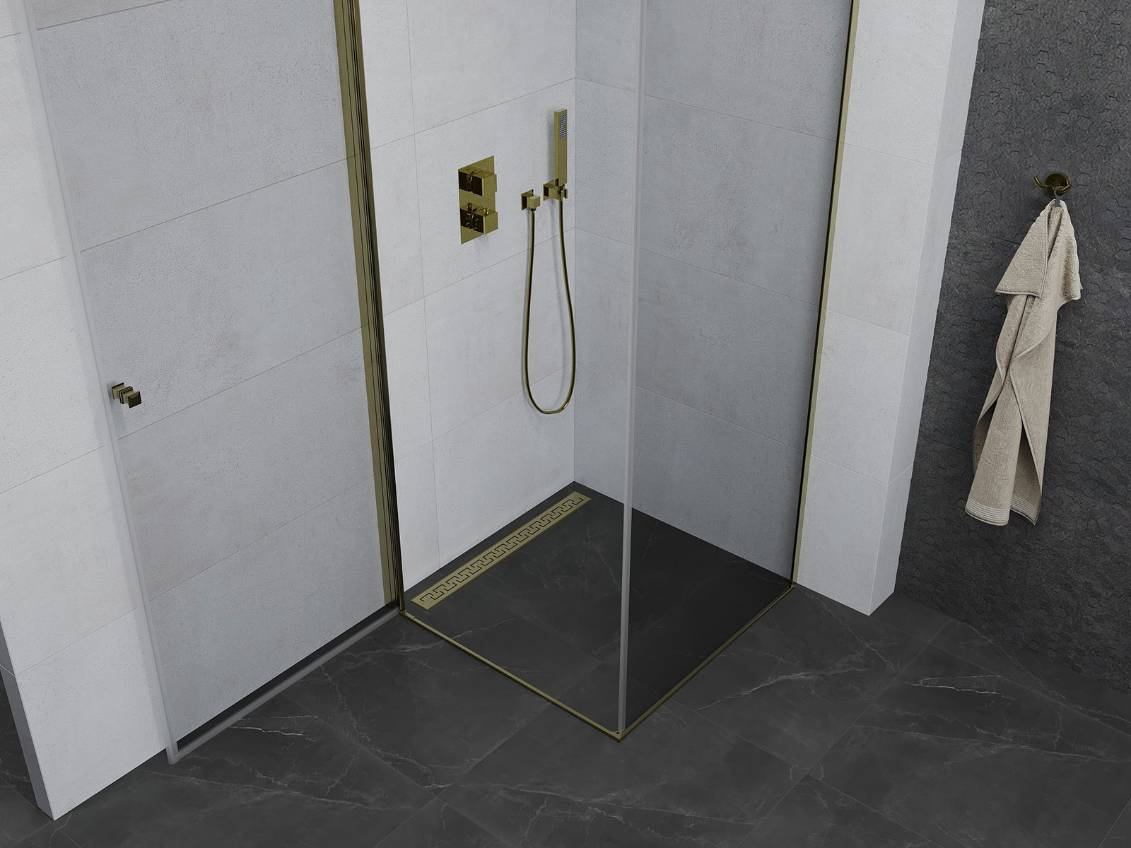 Η πρακτική και άνετη λαβή κατασκευάζεται από ανθεκτικό και αντοχής μέταλλο. Ο μοντέρνος σχεδιασμός σε συνδυασμό με το φινίρισμα που ταιριάζει με το χρώμα των προφίλ προσδίδει στο σύνολο μια σύγχρονη και κομψή εμφάνιση, τονίζοντας την αισθητική κάθε μπάνιου.