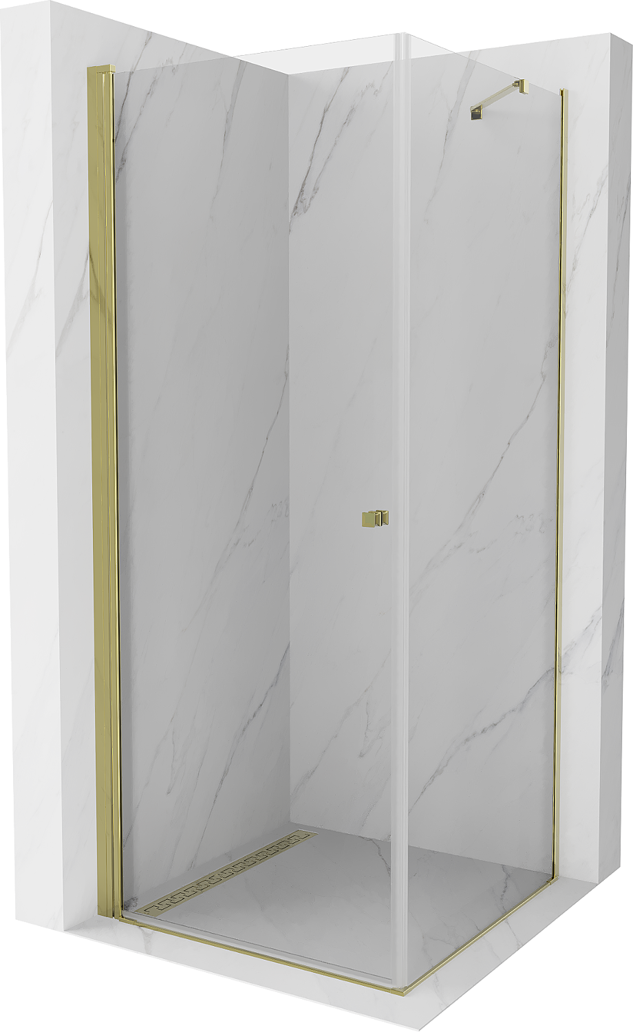 Mexen Pretoria καμπίνα ντους με πόρτα που ανοίγει 100 x 100 cm, διαφανές, χρυσό