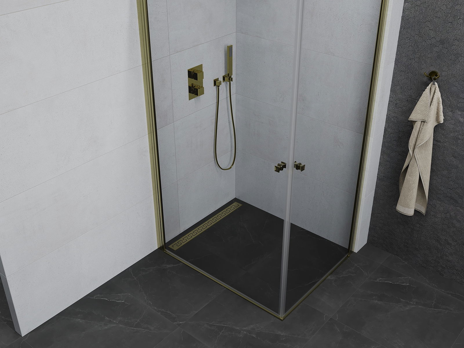 Mexen Pretoria Διπλή καμπίνα ντουζ 100 x 90 cm, διάφανη, χρυσή - 852-100-090-50-00-02