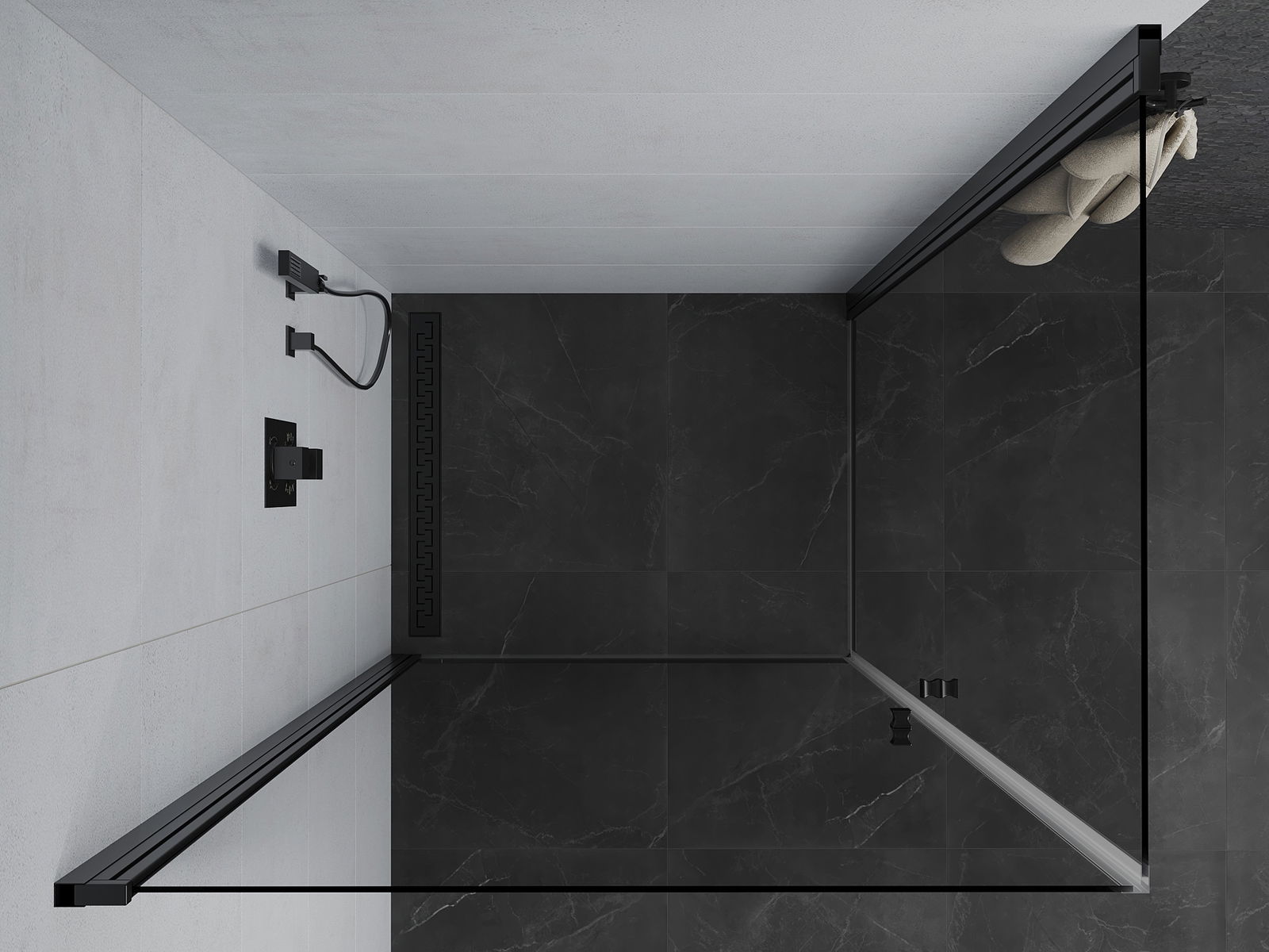 Η πρακτική και άνετη λαβή κατασκευάζεται από ανθεκτικό και αντοχής μέταλλο. Ο μοντέρνος σχεδιασμός σε συνδυασμό με το φινίρισμα που ταιριάζει με το χρώμα των προφίλ προσδίδει στο σύνολο μια σύγχρονη και κομψή εμφάνιση, τονίζοντας την αισθητική κάθε μπάνιου.
